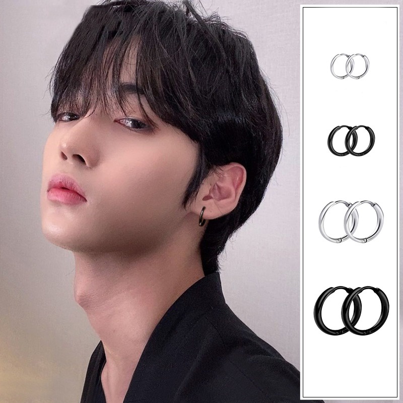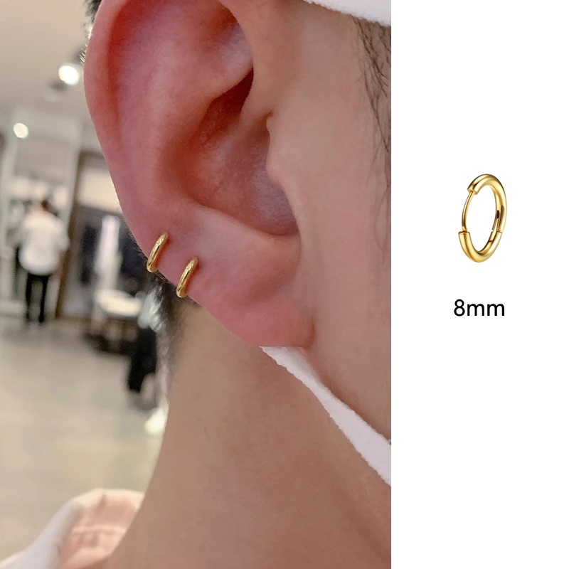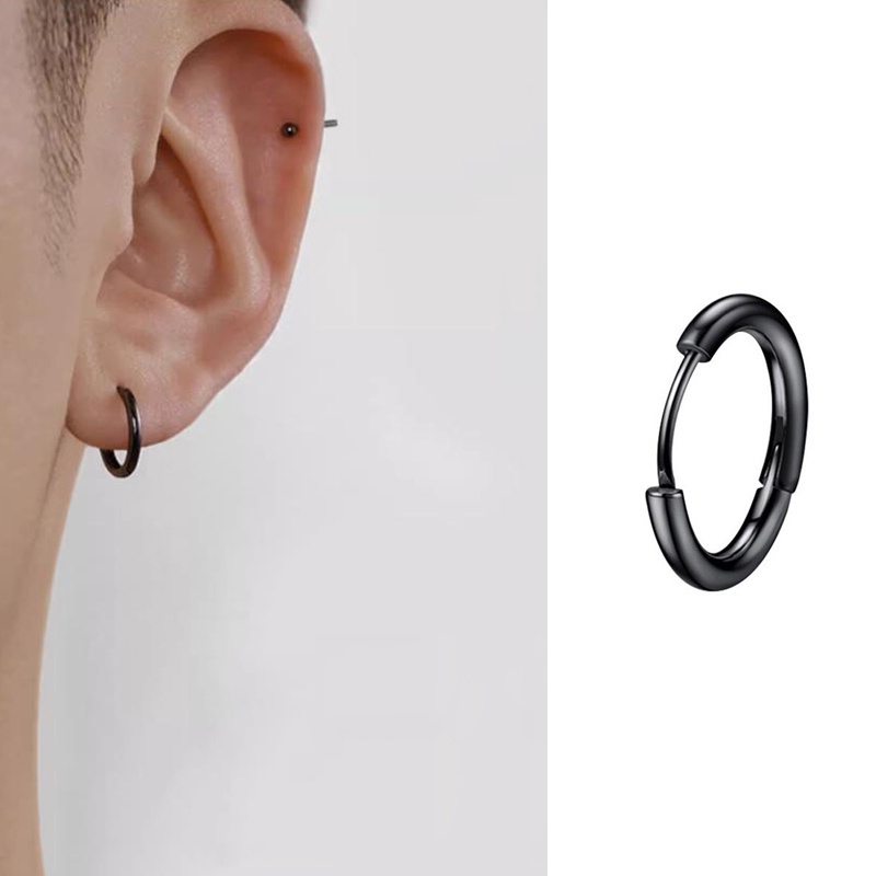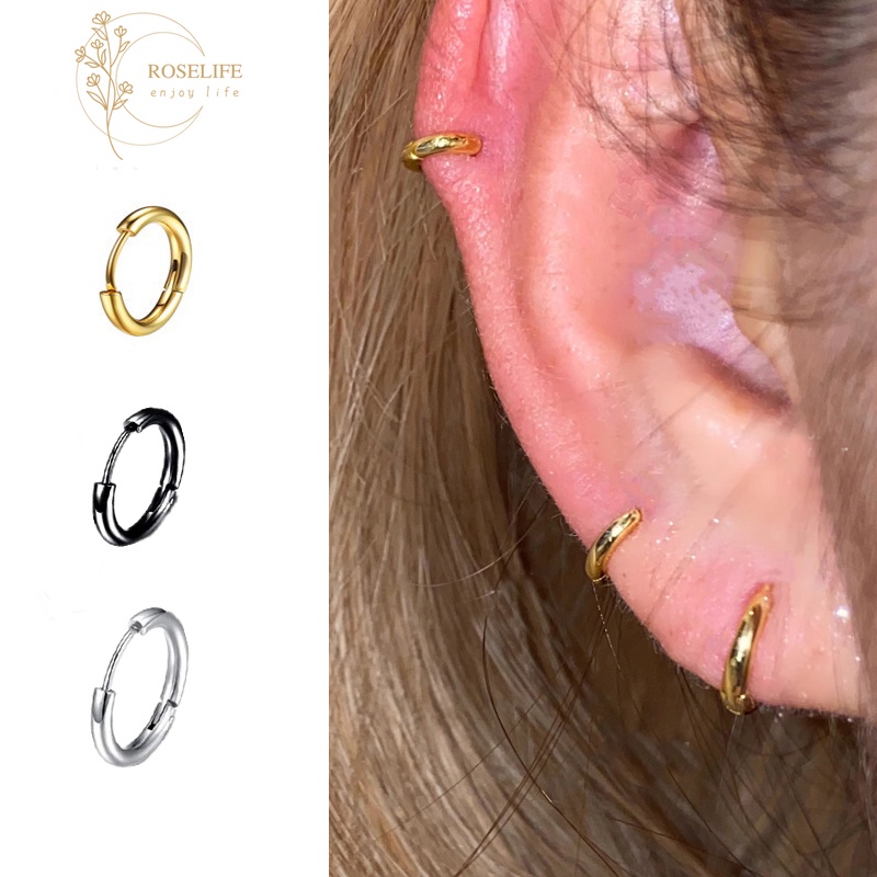 Roselife Unisex 1PC Classical Stainless Steel Glossy Gold/silver/black Circle Piercing Hoop Earrings for Men Women Hypoallergenicity Daily Wear Geometric Round Ear Jewelry