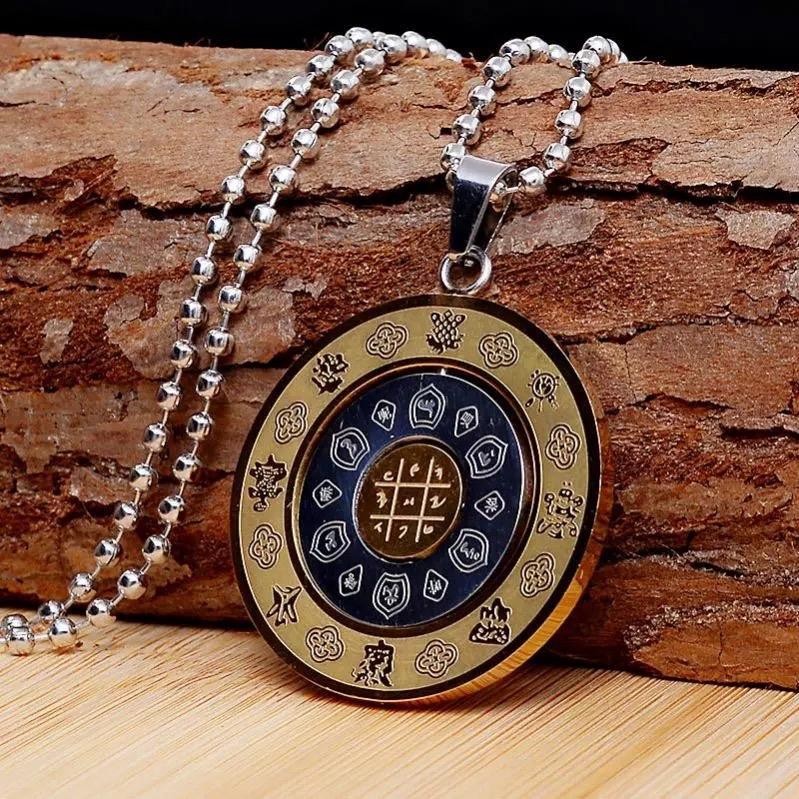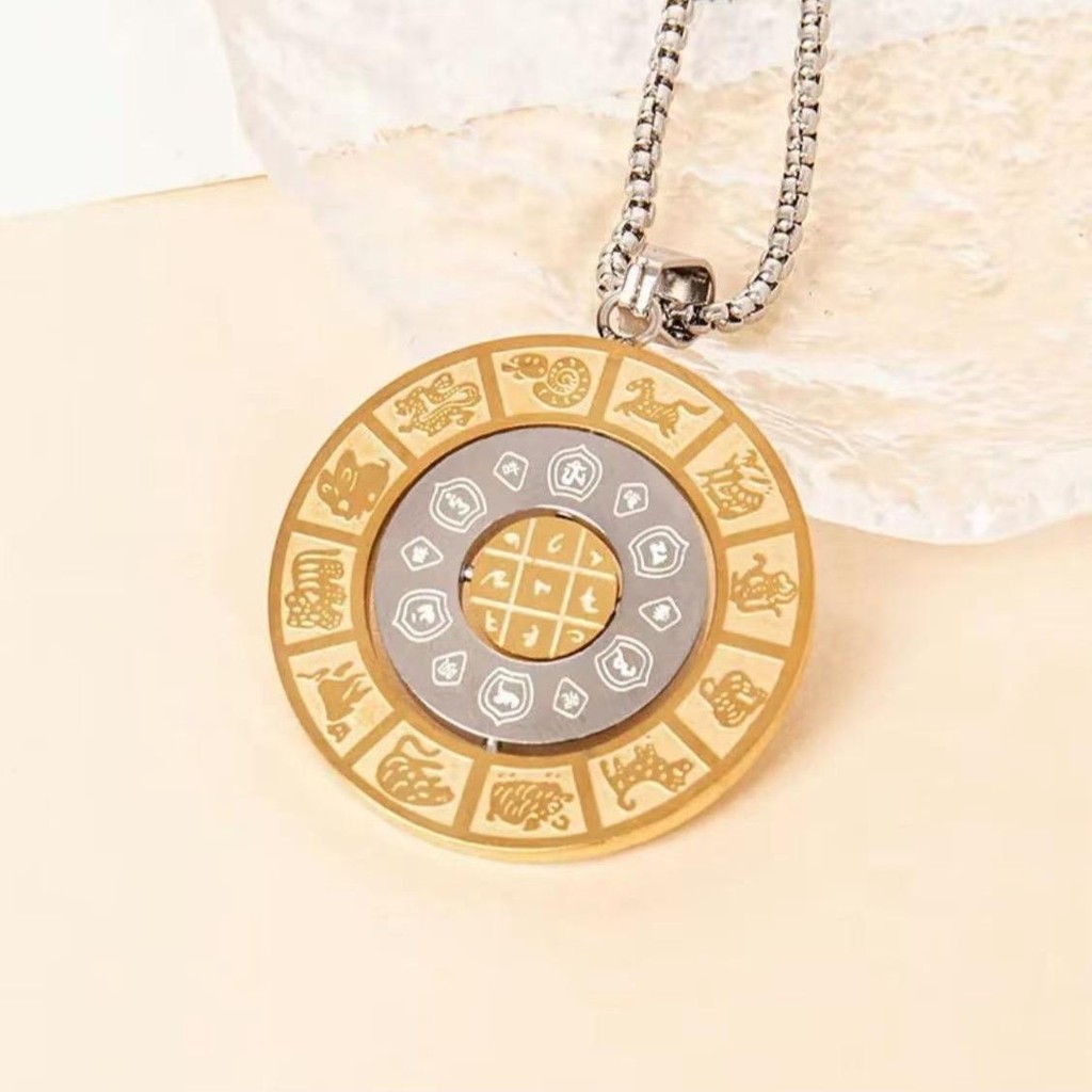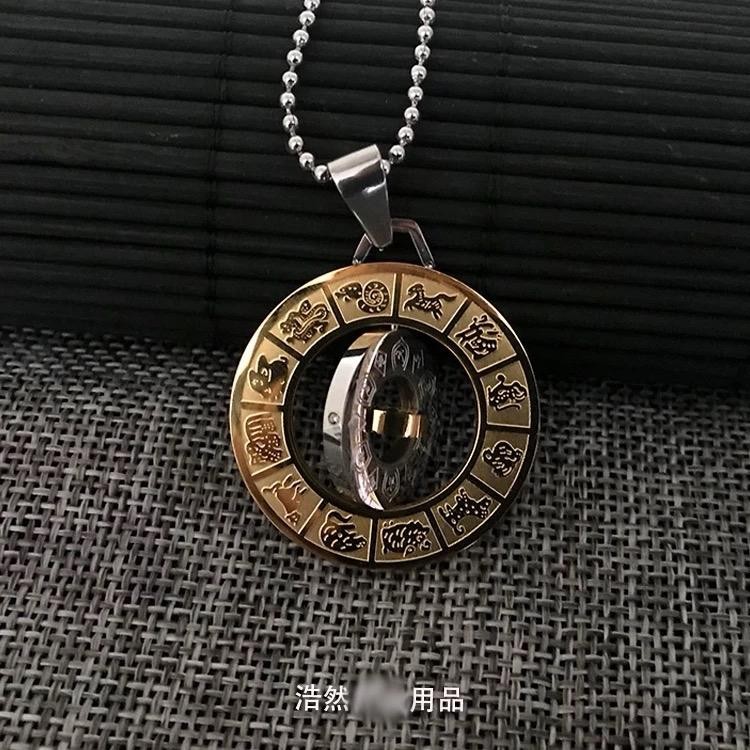 Rotatable Stainless Steel Zodiac Round Pendant Necklace Zodiac Chart Totem Amulet Necklace jewerly