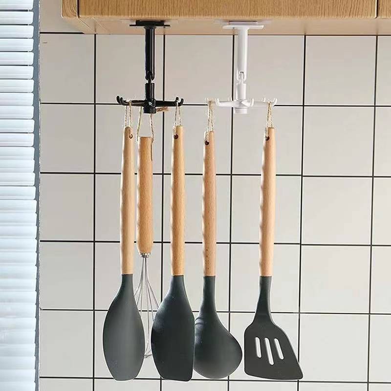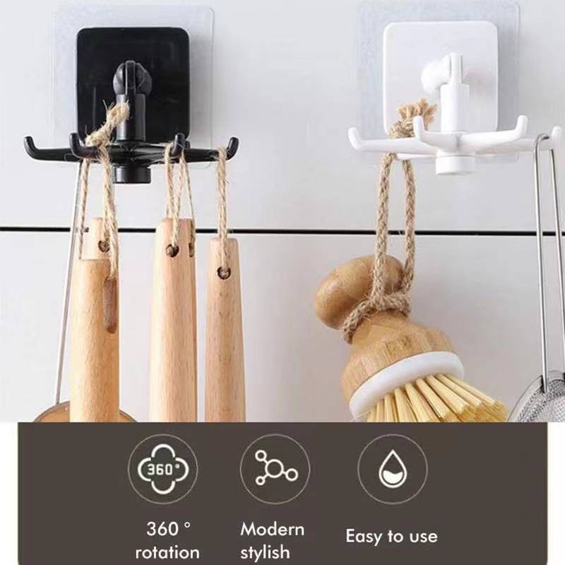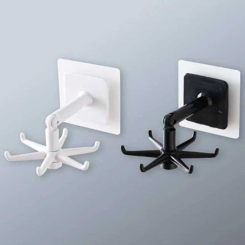 Rotating Hooks Storage Seamless Hooks Perforated Wall Hanging 360-degree Rotating 6-claw Rack-Z445