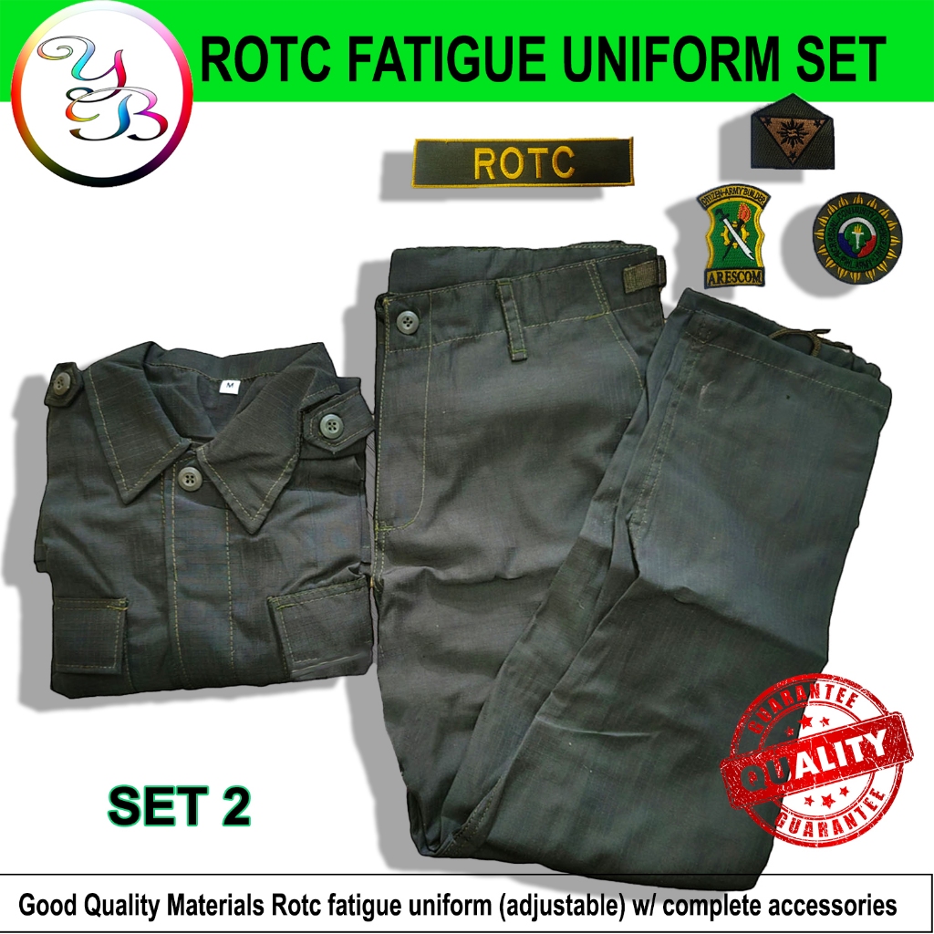 Rotc Fatigue uniform adjustable with complete accessories and patches (ripstap fabric)