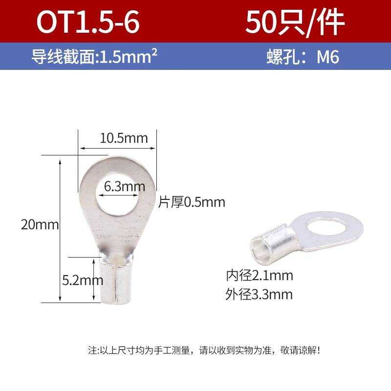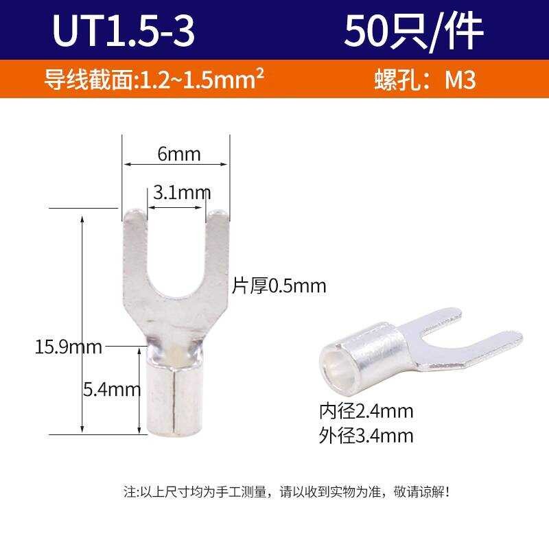 Round 1.5 Fork Type 1 Quick U Cold Press Terminal Lug OT Electrical Wire Connector Copper Joint UT