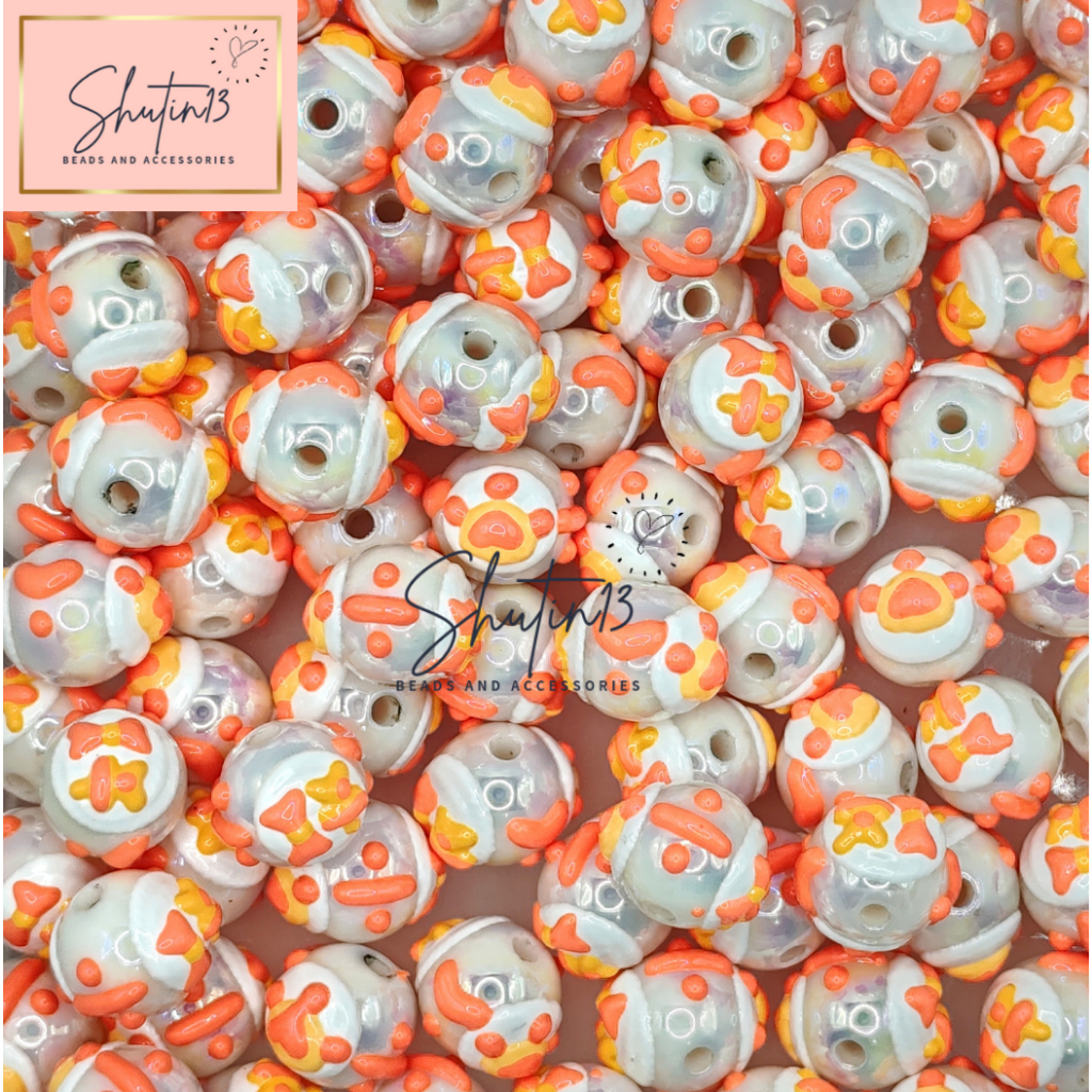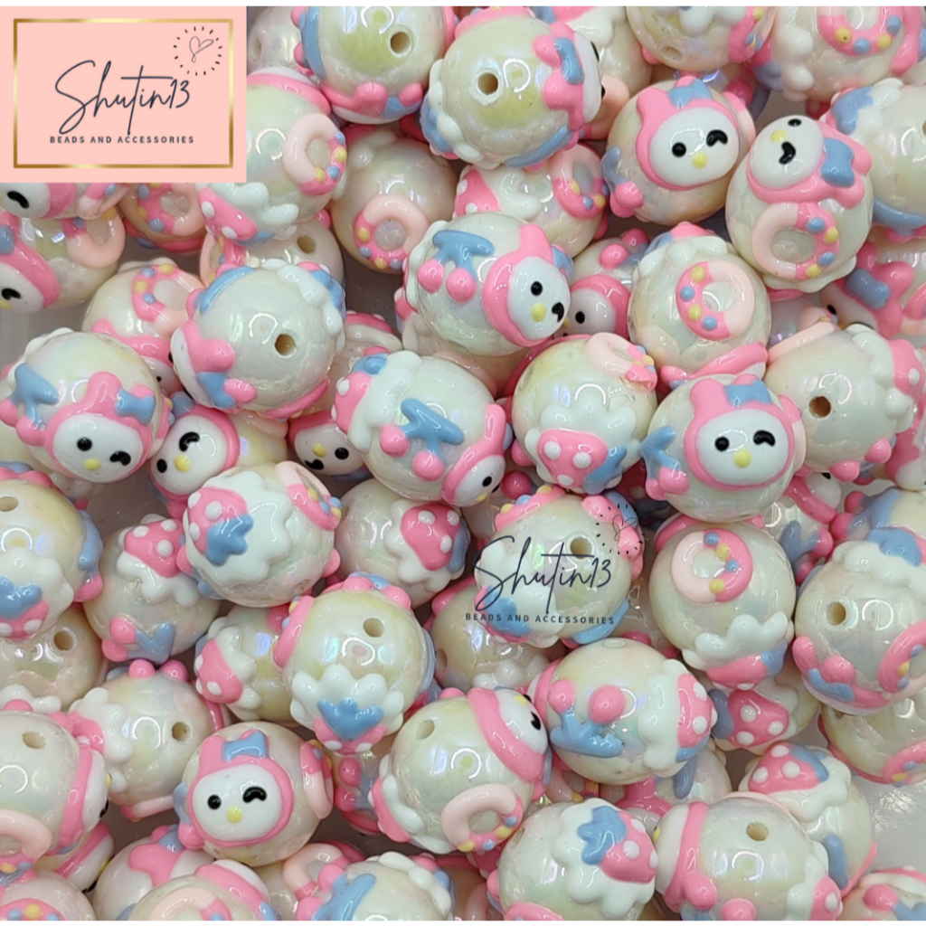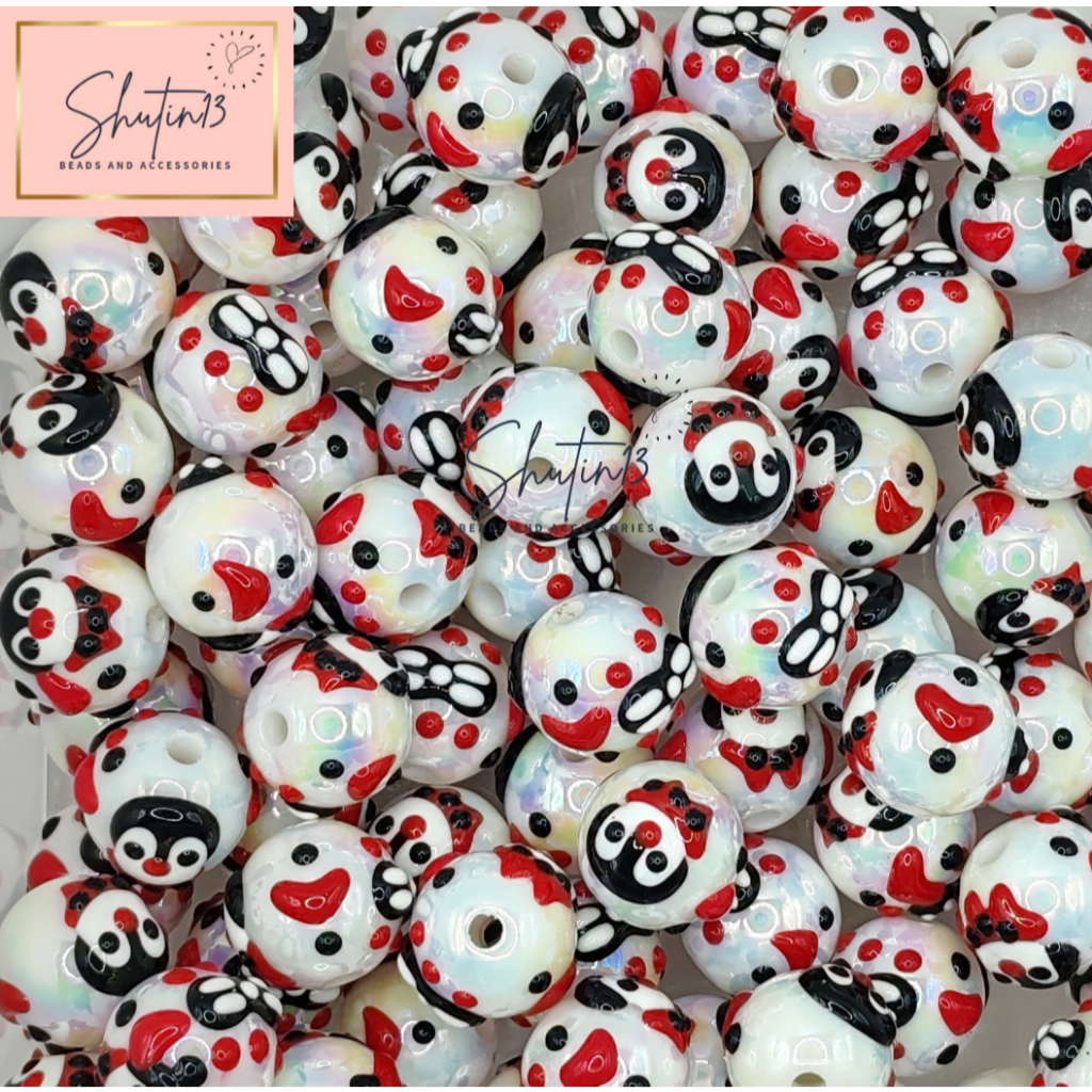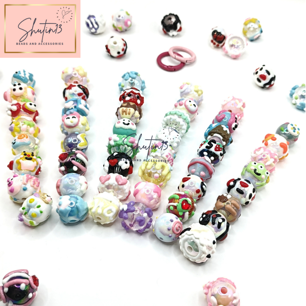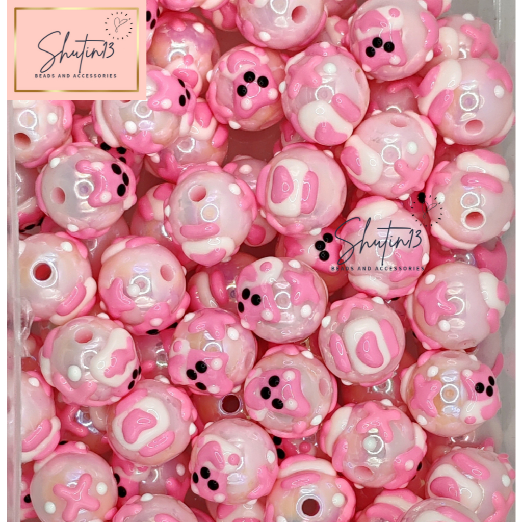 Round Acrylic Hand Painted Beads Loose Animal Cartoon DIY Beads for Phone Holder