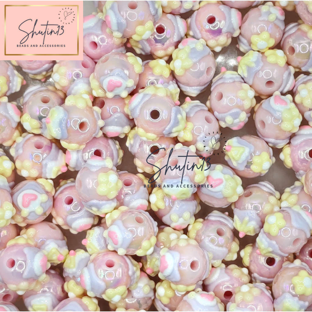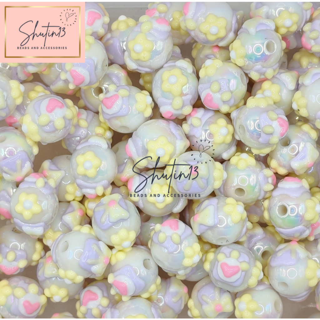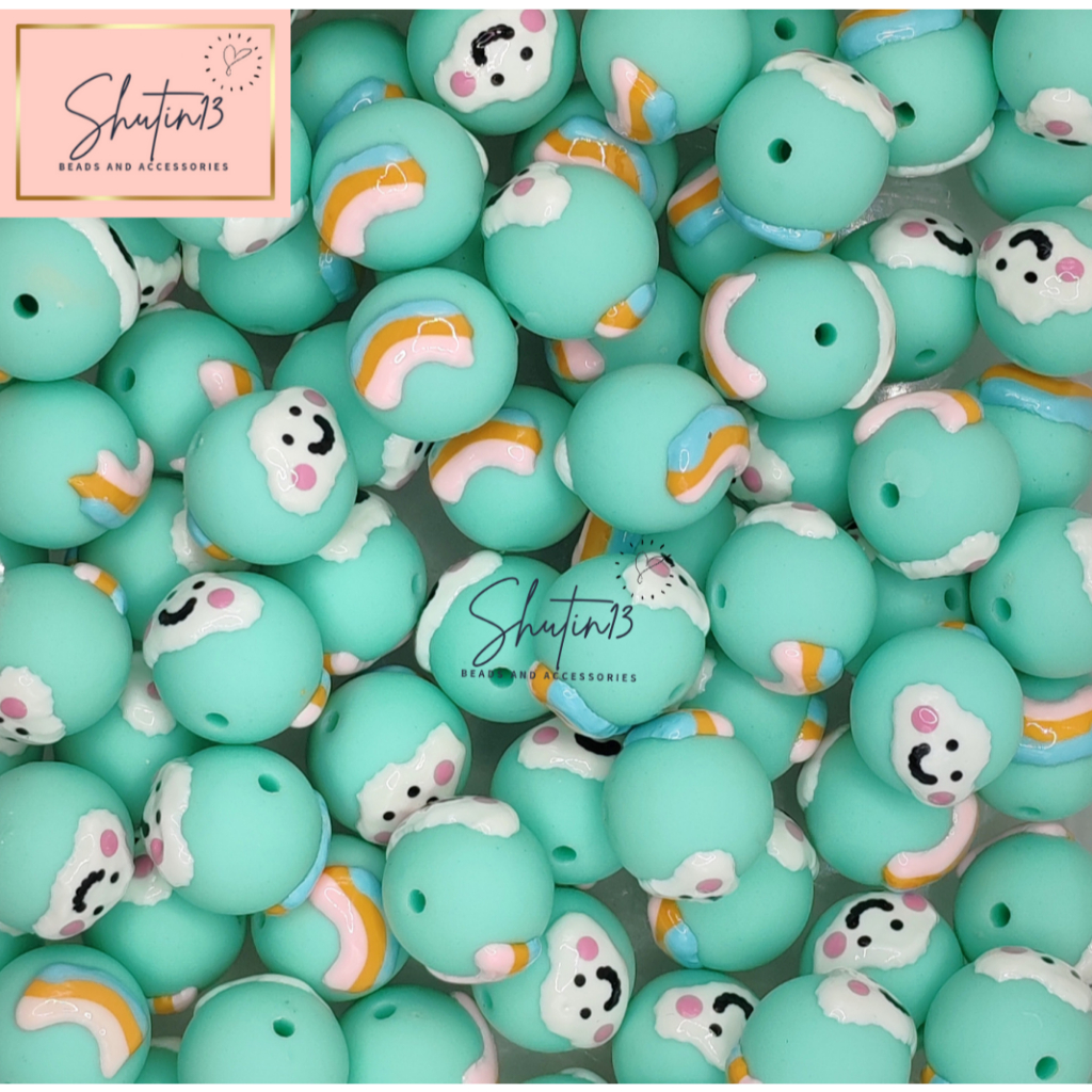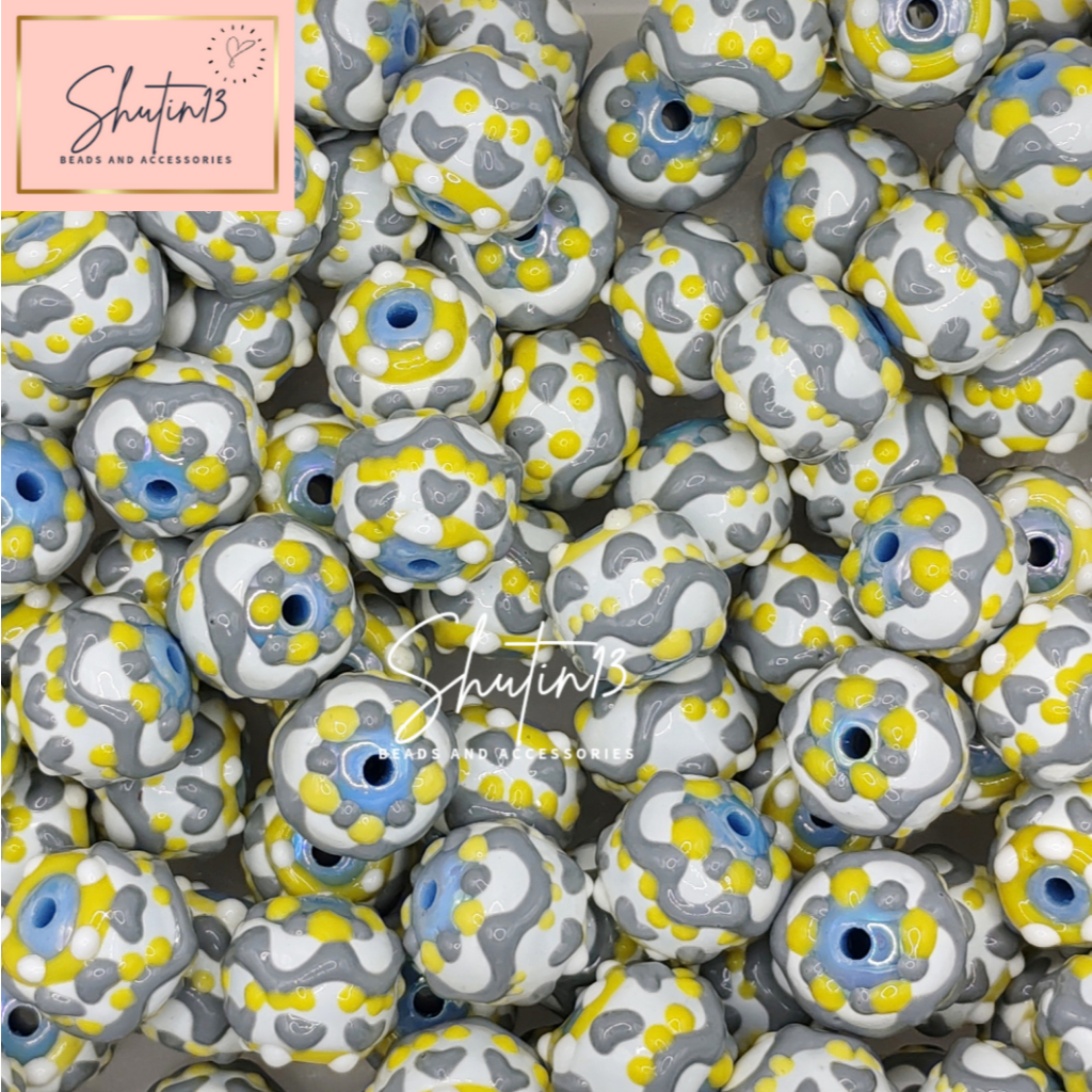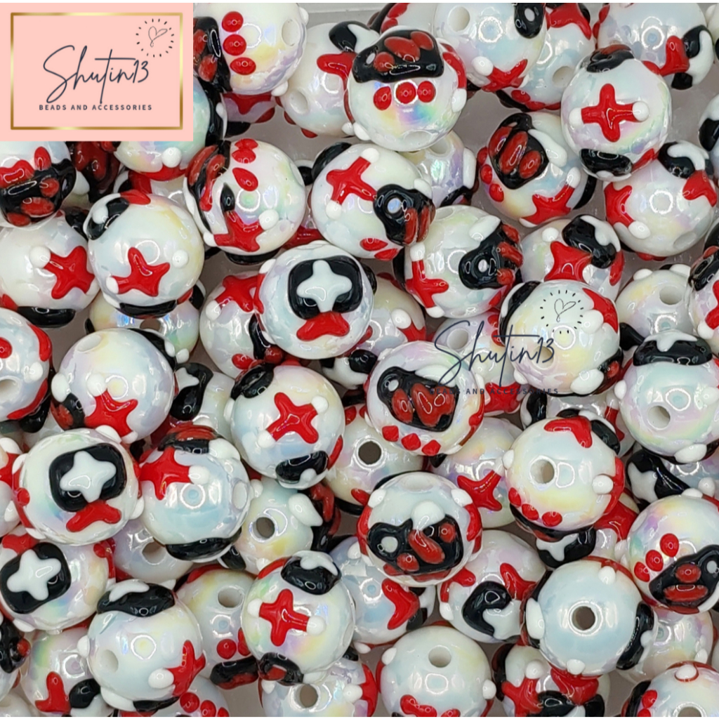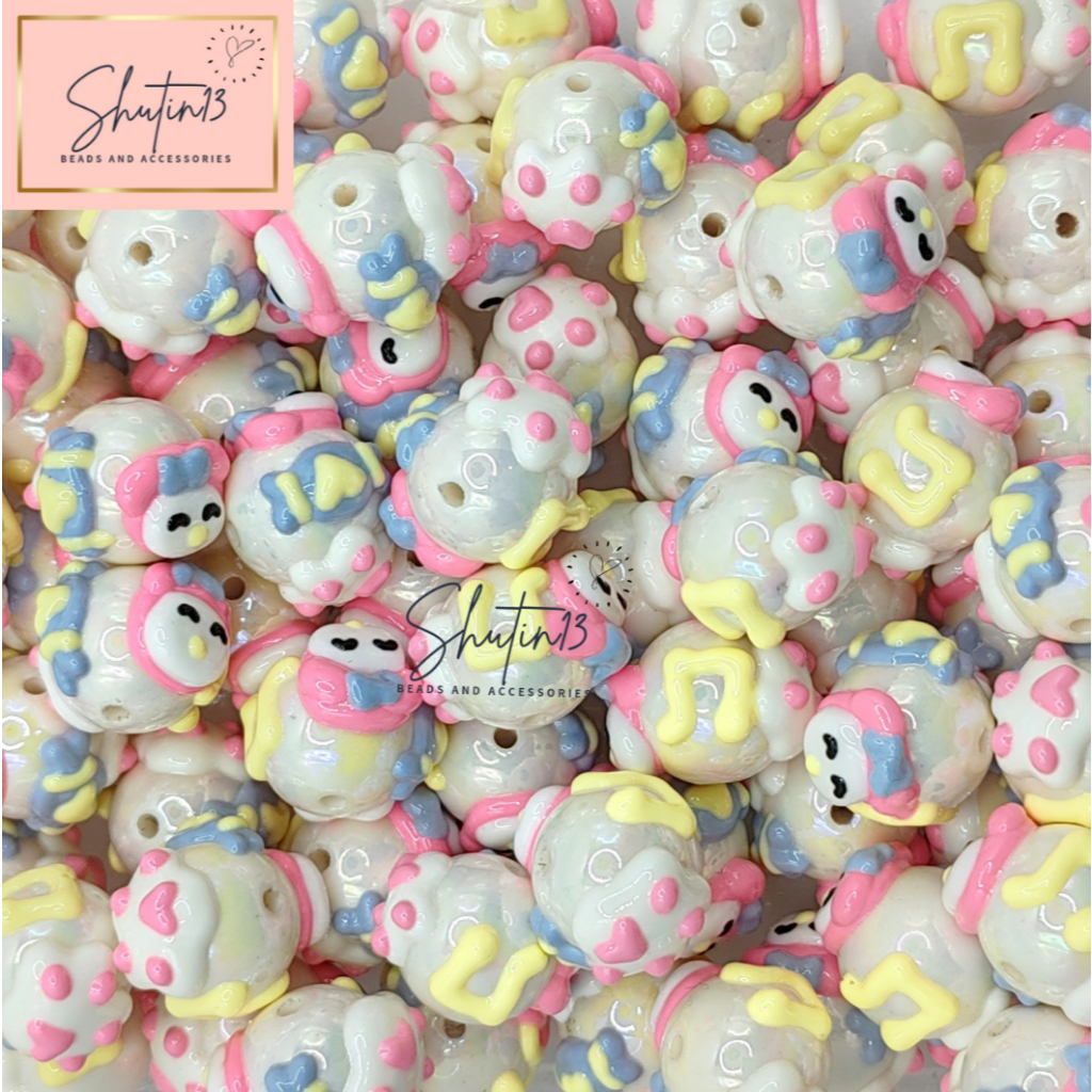 Round Acrylic Hand Painted Beads Loose Animal Cartoon DIY Beads for Phone Holder