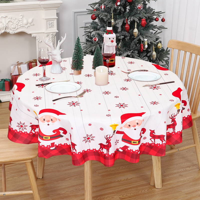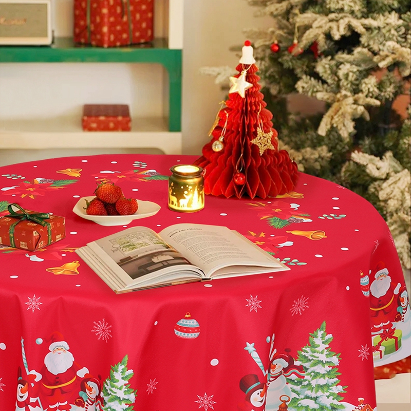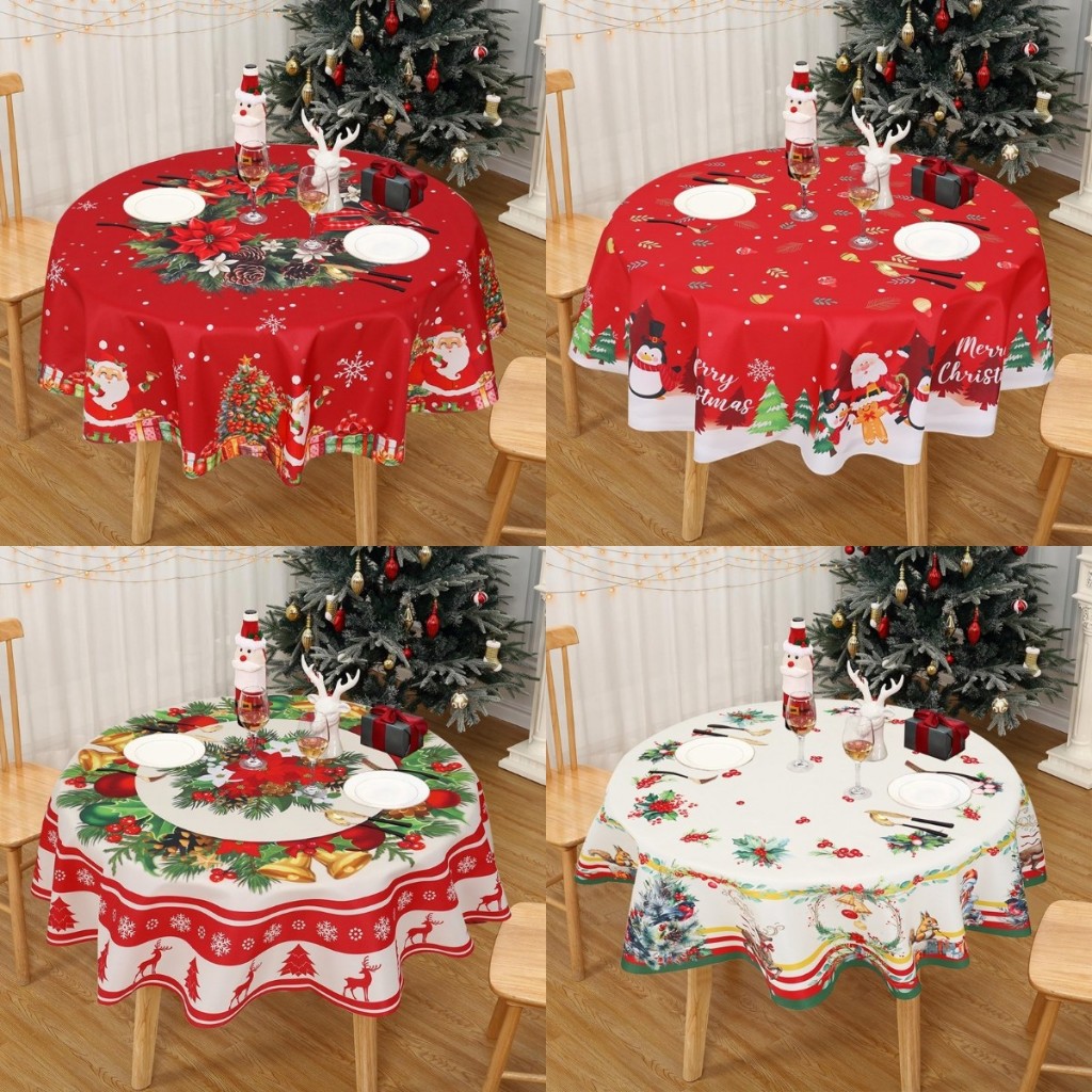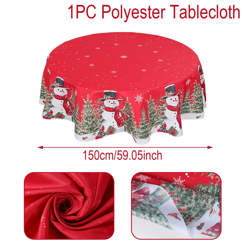 Round Christmas Table Cloth 6 Seater Santa Snowman Wreath Red Table Cover Christmas Decorations Dining Table Cover Happy New Year 2025