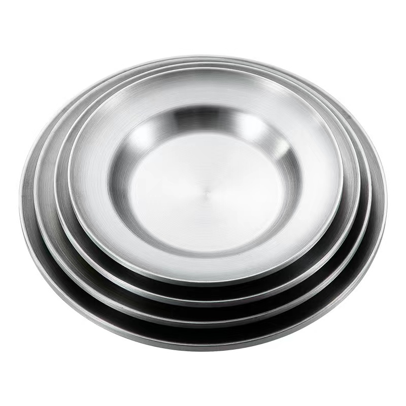 Round Plate Stainless Steel Plate Reusable Picnic Dinner Plate Food&Fruit Saucers B-05 B-06