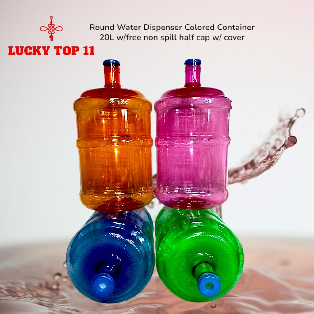 Round Water Dispenser 20L or 5Gallon Colored Container W/FREE non spill half cap w/cover