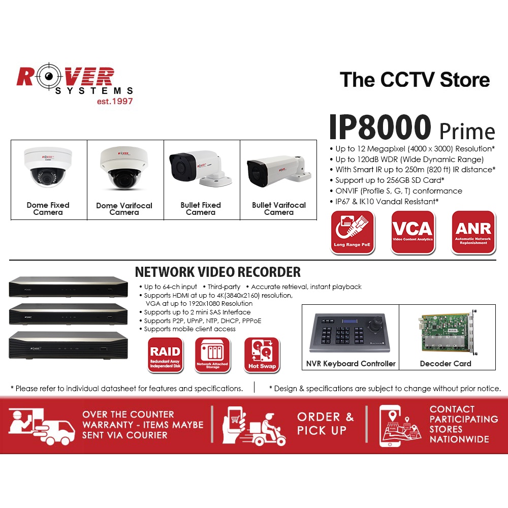 Rover Systems 4MP IP Dome Varifocal CCTV Camera Indoor Security Camera IP Camera 8000 Prime Series
