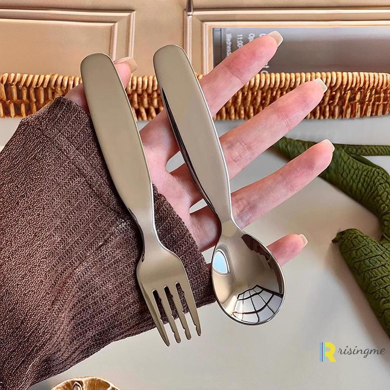 [Risingme] Toddler Forks Spoon Portable Spoon Fork Tableware Toddler Utensils Stainless Steel Cutlery For Hiking Outdoor Camping Cooking