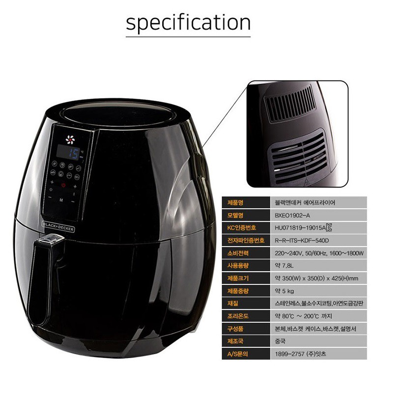 BLACK + DECKER Digital Oil Free Air Fryer BXEO1902-A 7.8L. (BLACK)