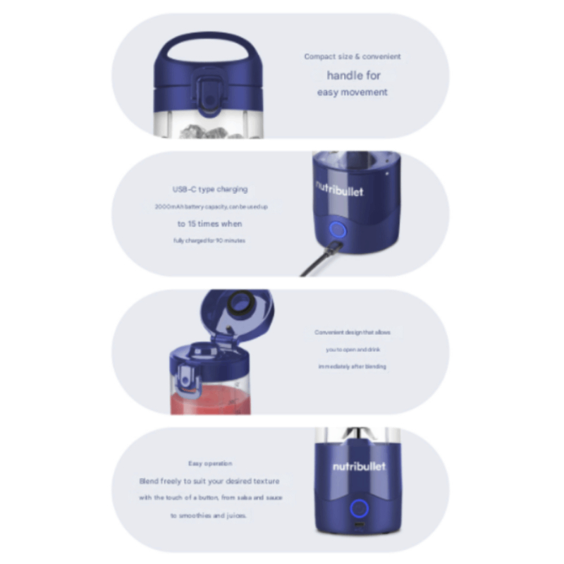 NUTRIBULLET Daily Mini Cordless Blender 5 Colors | Portable Wireless Juicer Bottle for Smoothies & Shakes