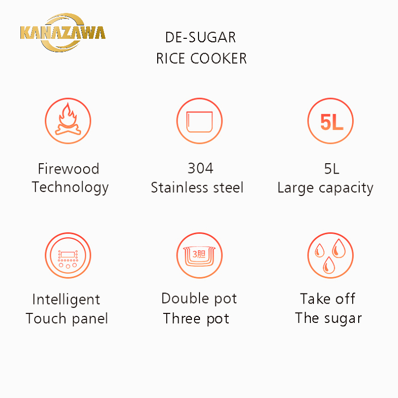 KANAZAWA Original 5L Low-sugar Desugar Rice Cooker Mulitfunctional English Touchscreen