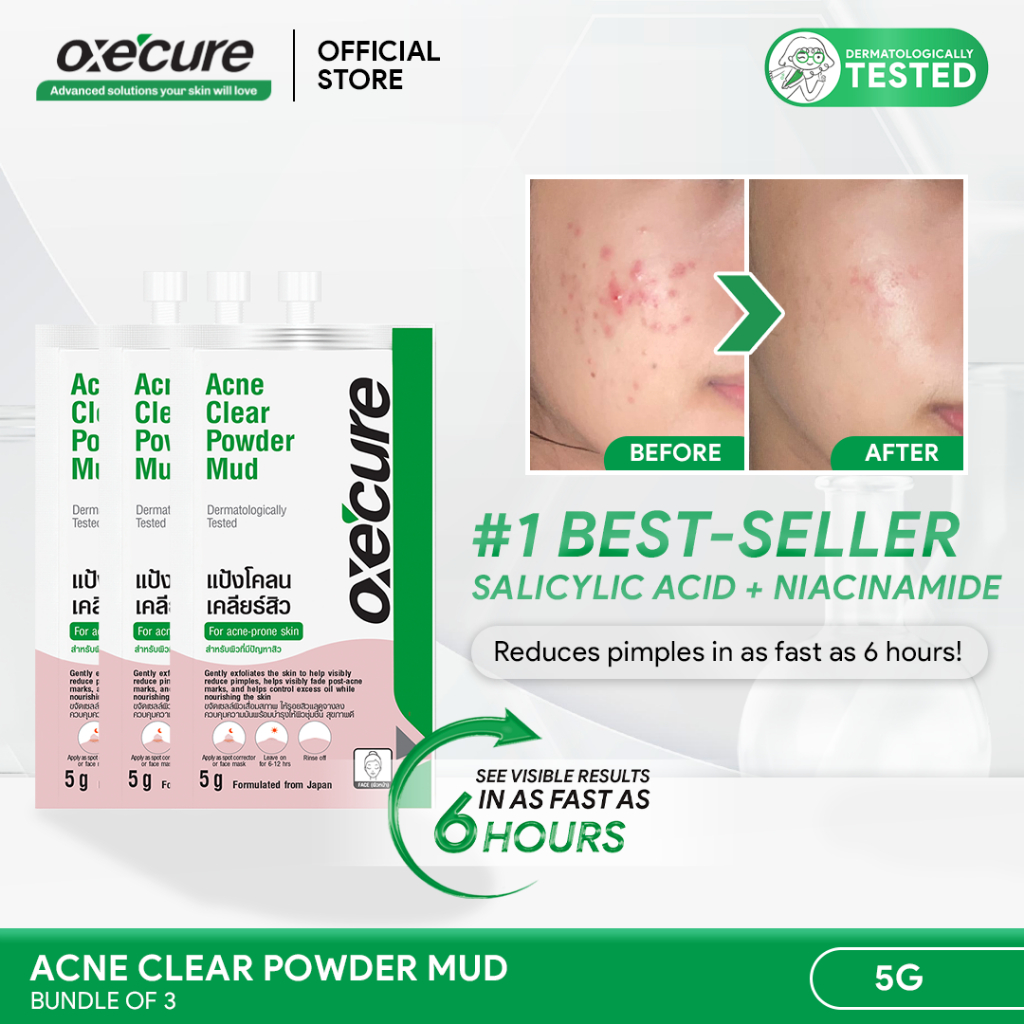 OXECURE 2% Salicylic Acid Acne Clear Powder Mud, Bundle of 3
