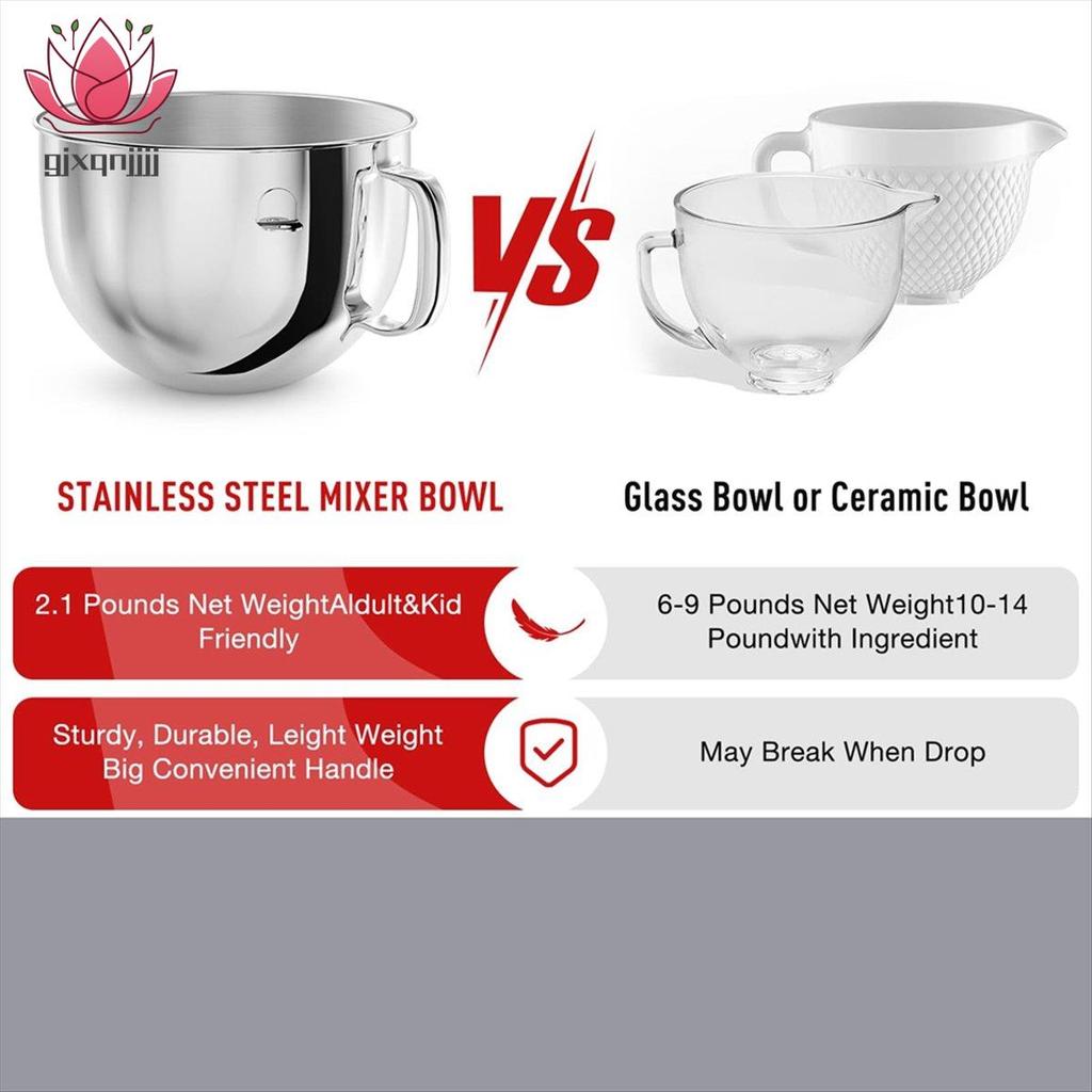 6QT Stainless Steel Mixer Bowl For Stand Mixers, Kitchen Aid Mixing Bowl For 6QT Tilt-Head Mixer With Handle