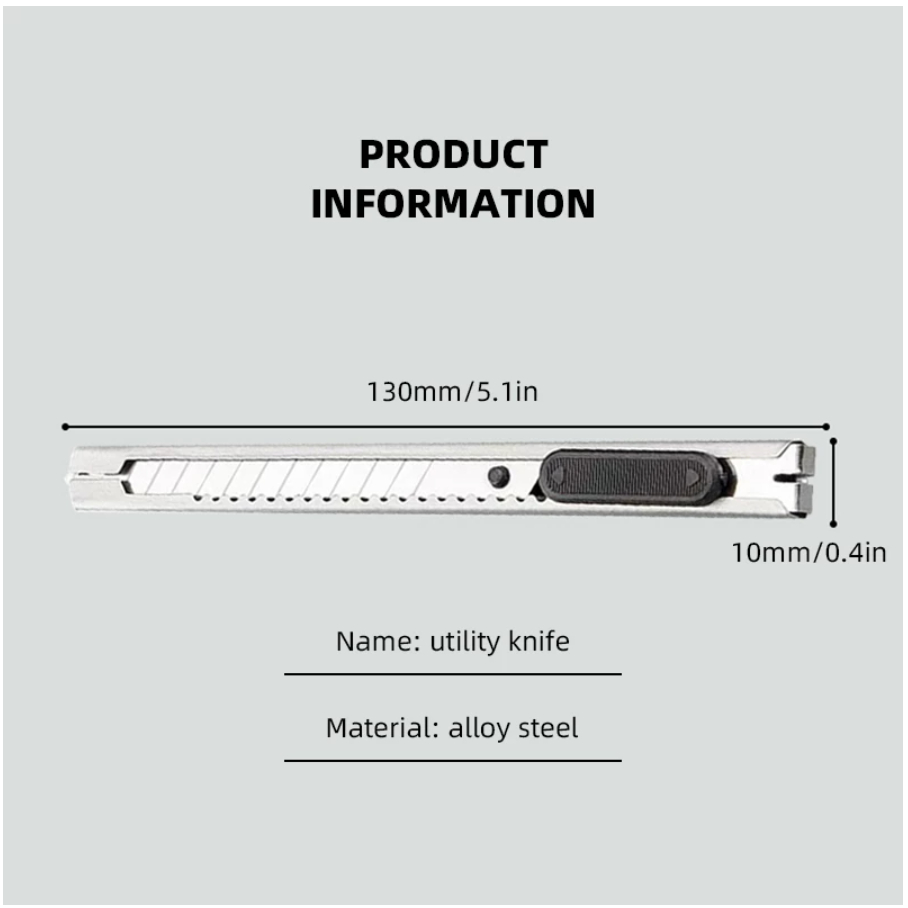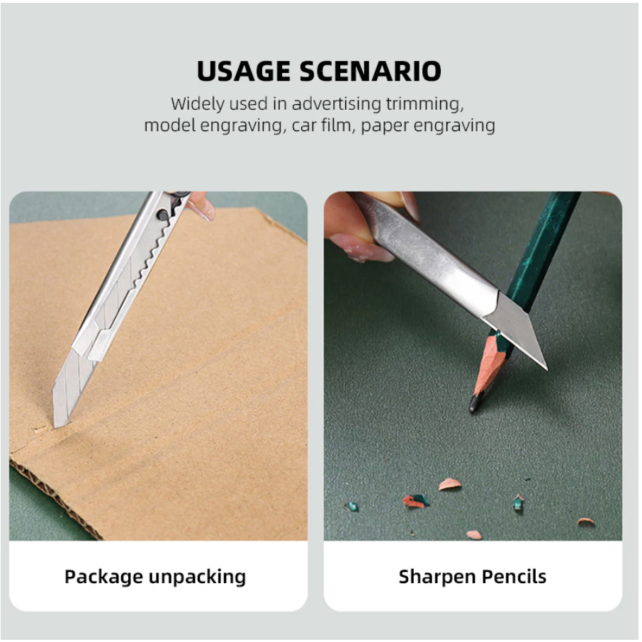 Sharp Metal Cut Paper SST Stainless Steel Utility Knife Retractable Snap Off Lock Blade Cutter