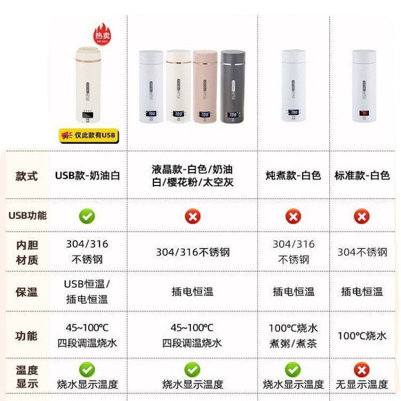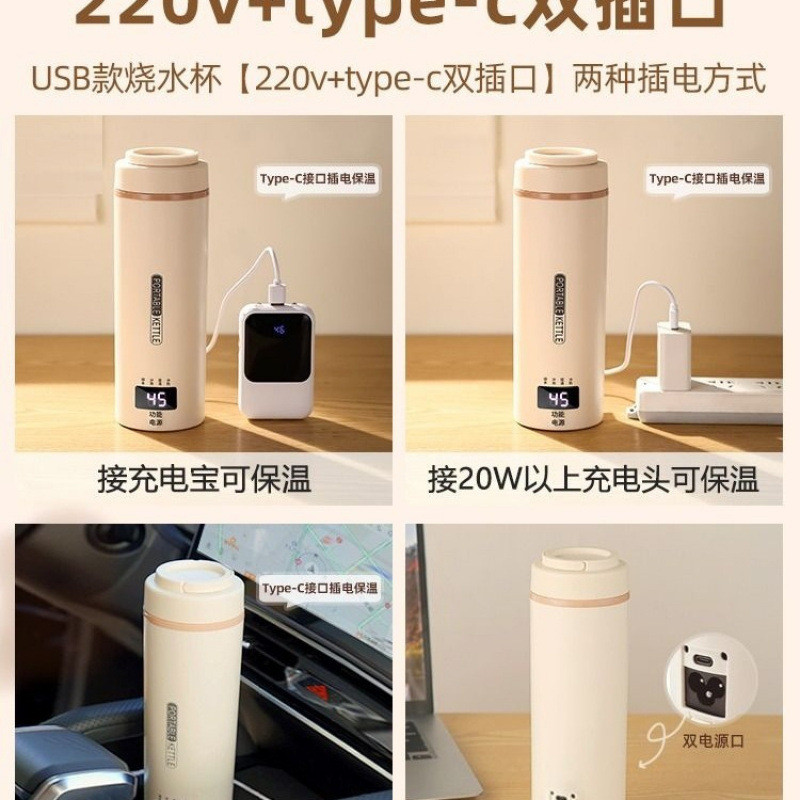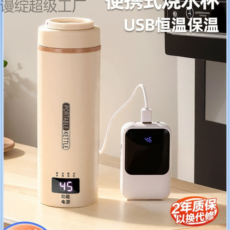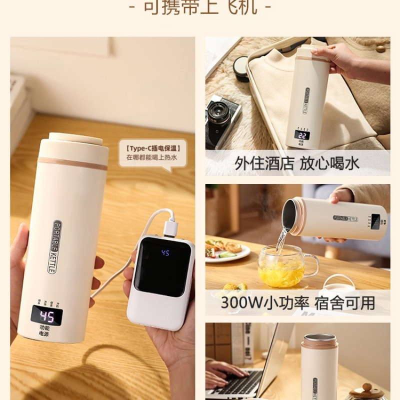 Portable Kettle USB Insulated Travel Water Boiling Cup Dormitory Hot Water Kettle Electric Heating Cup Rechargeable Electric Heater