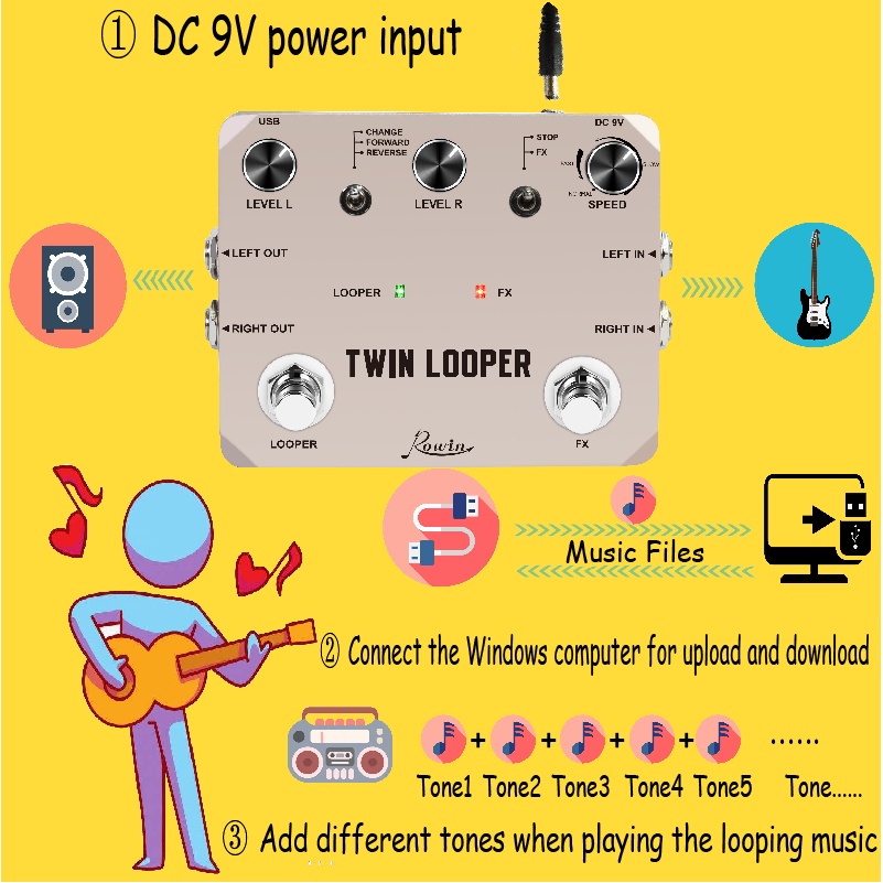Rowin LTL-02 Twin Looper Pedal Upgrades Looper Pedals For Electric Guitar 10 Min Looping Unlimited Undo/Redo Function 11 Types
