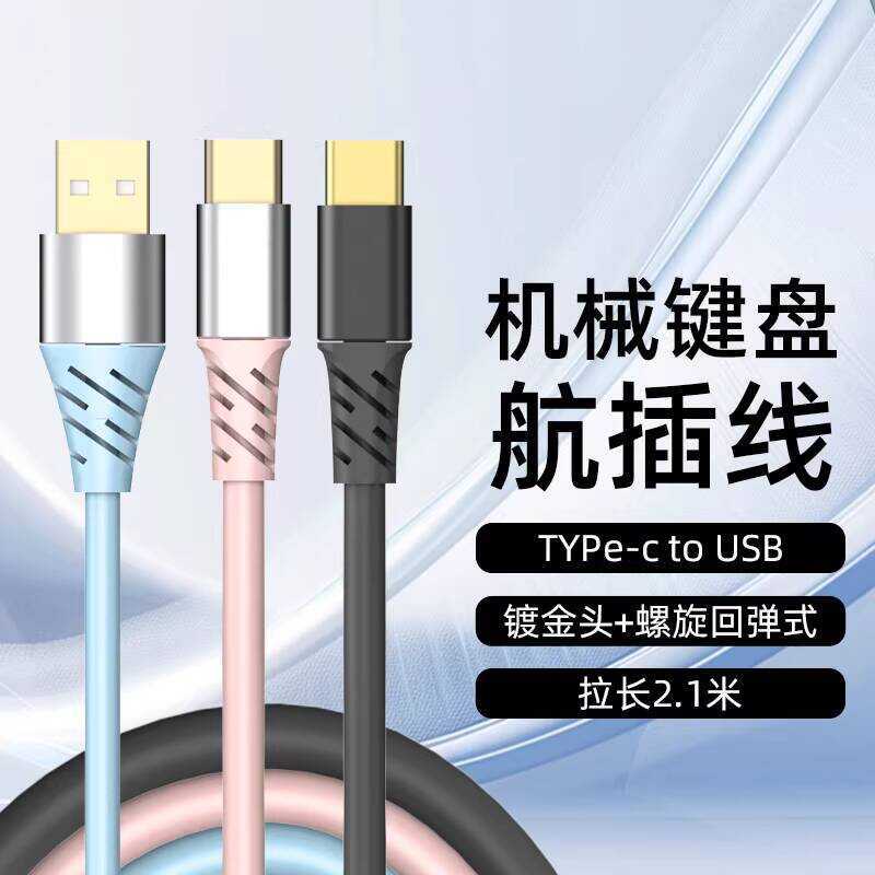 Royal Axe Customized Mechanical Keyboard Aviation Plug Spiral Data Cable USB+Type-c