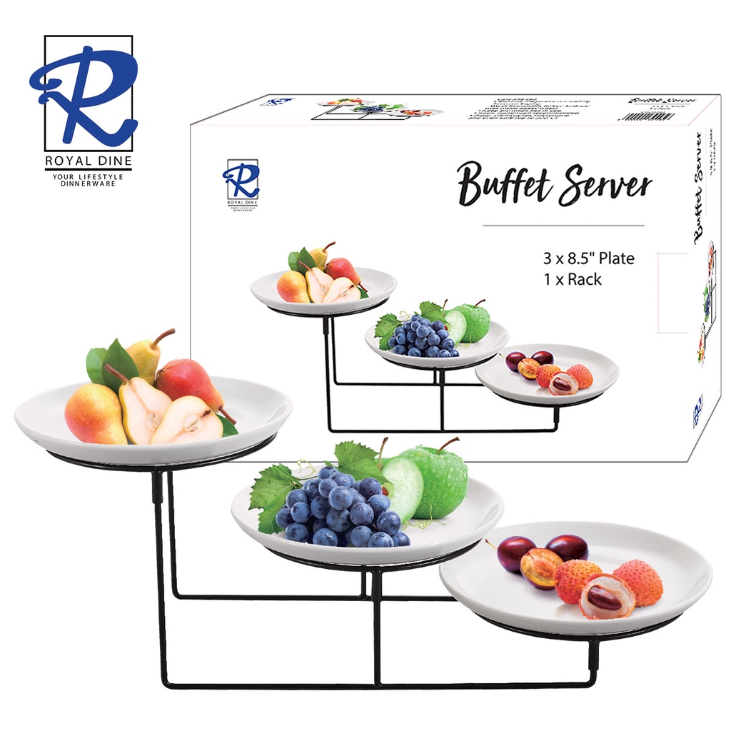 Royal Dine 21.2cm 3 Tier Serving Plate Set with Rack Buffet Server White Round Ceramic CROY382