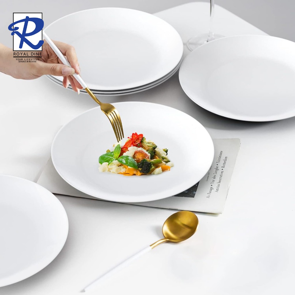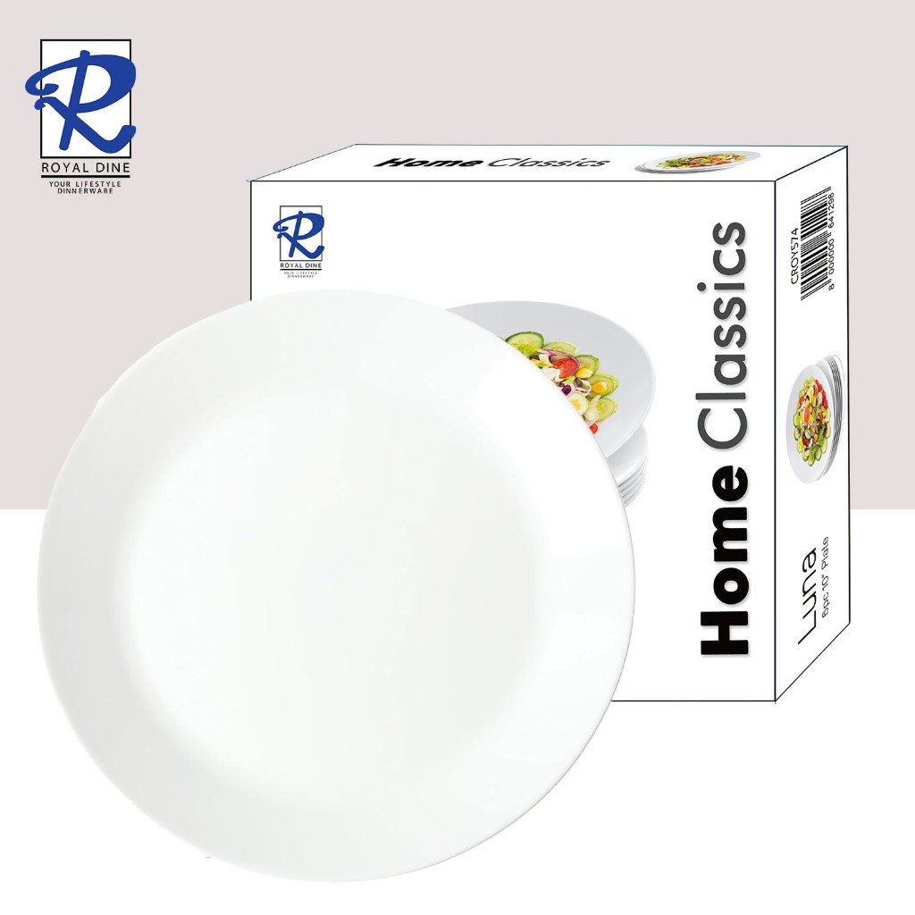Royal Dine Luna 6pc 10" Opal Dinner Plate Plain White Plates Set CROY574