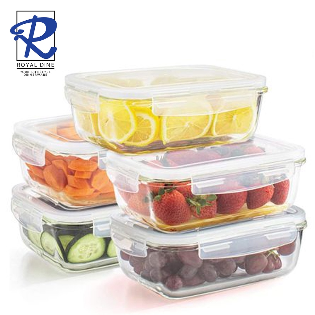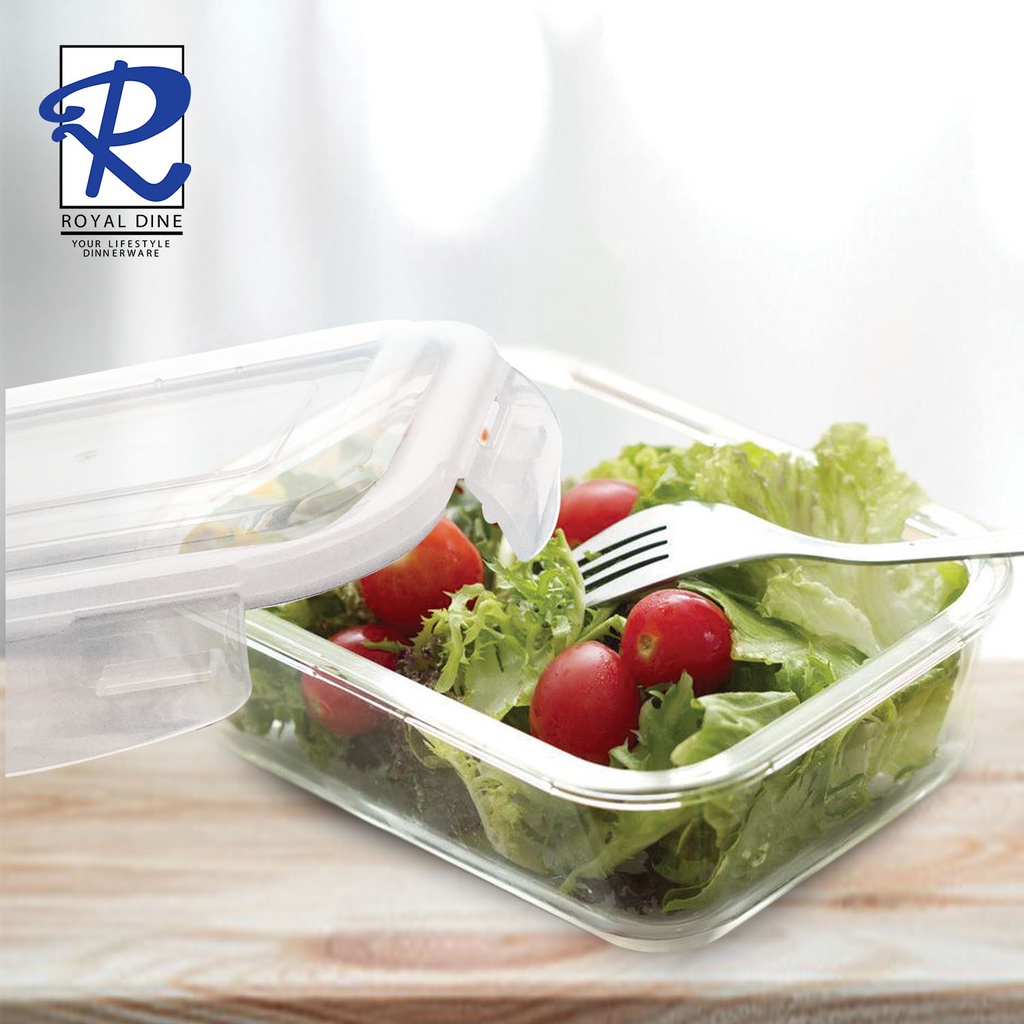 Royal Dine Fresh Bowl White Rectangular Glass Food Storage Food Keeper