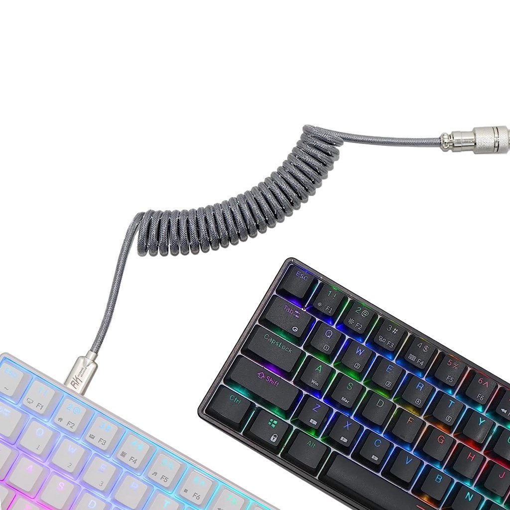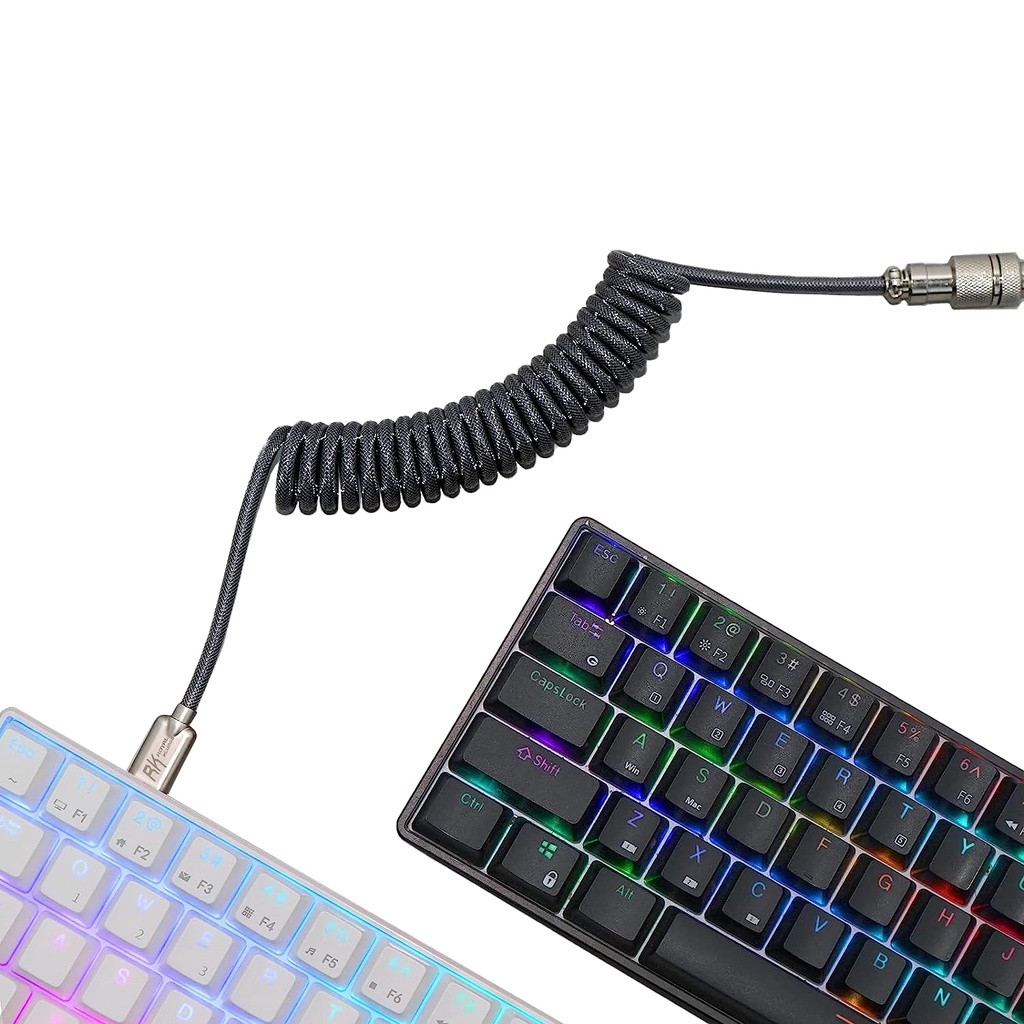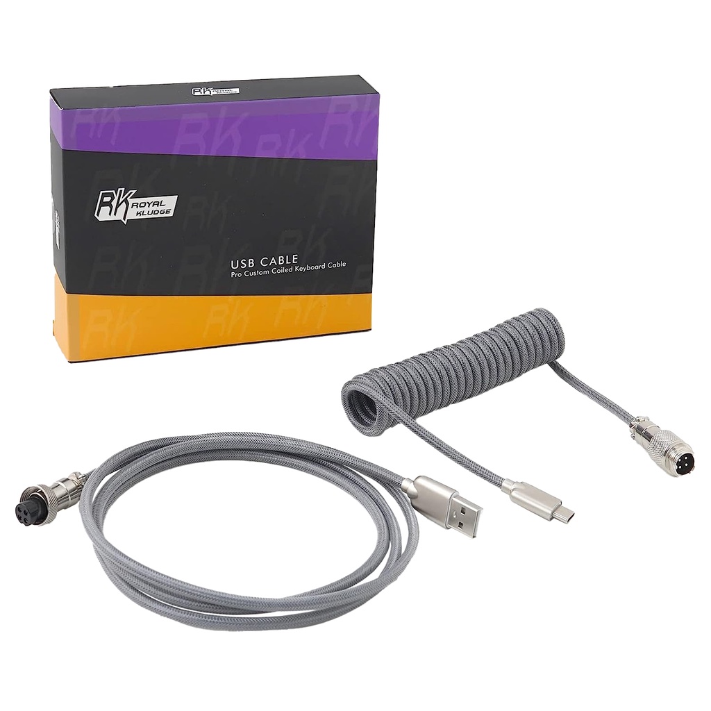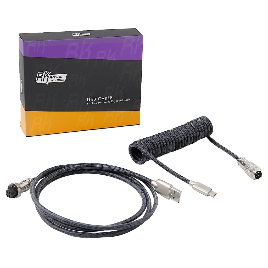Royal Kludge M12 5ft Braided USB-A to Type-C Aviator Connector Cable for PC & Laptop (Black, Grey)