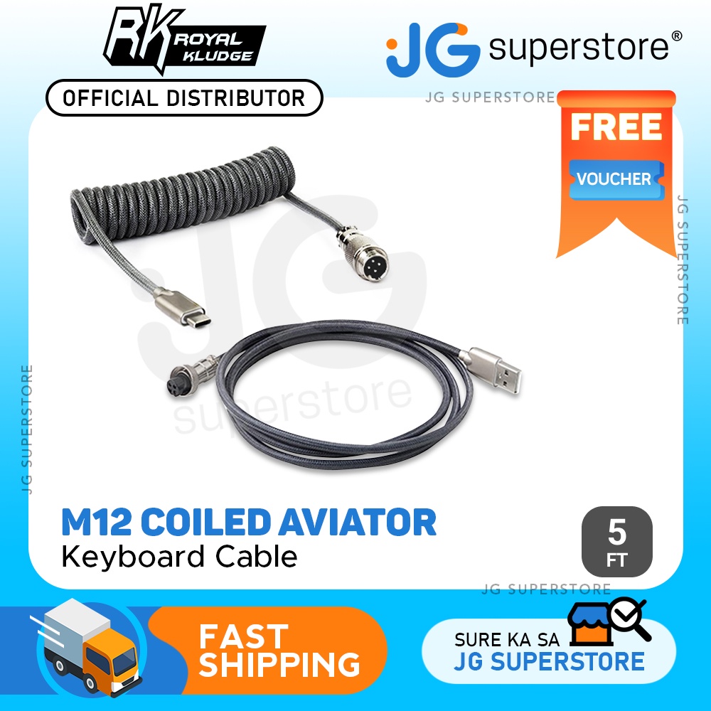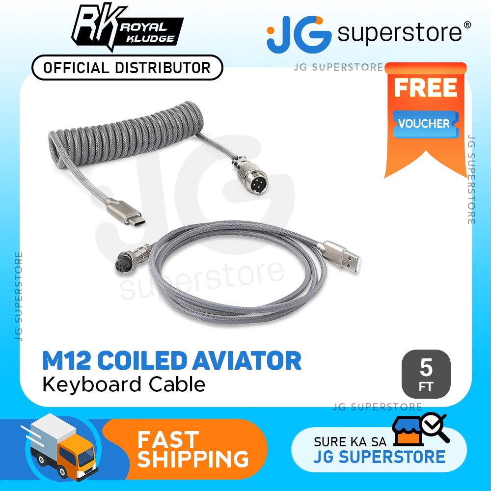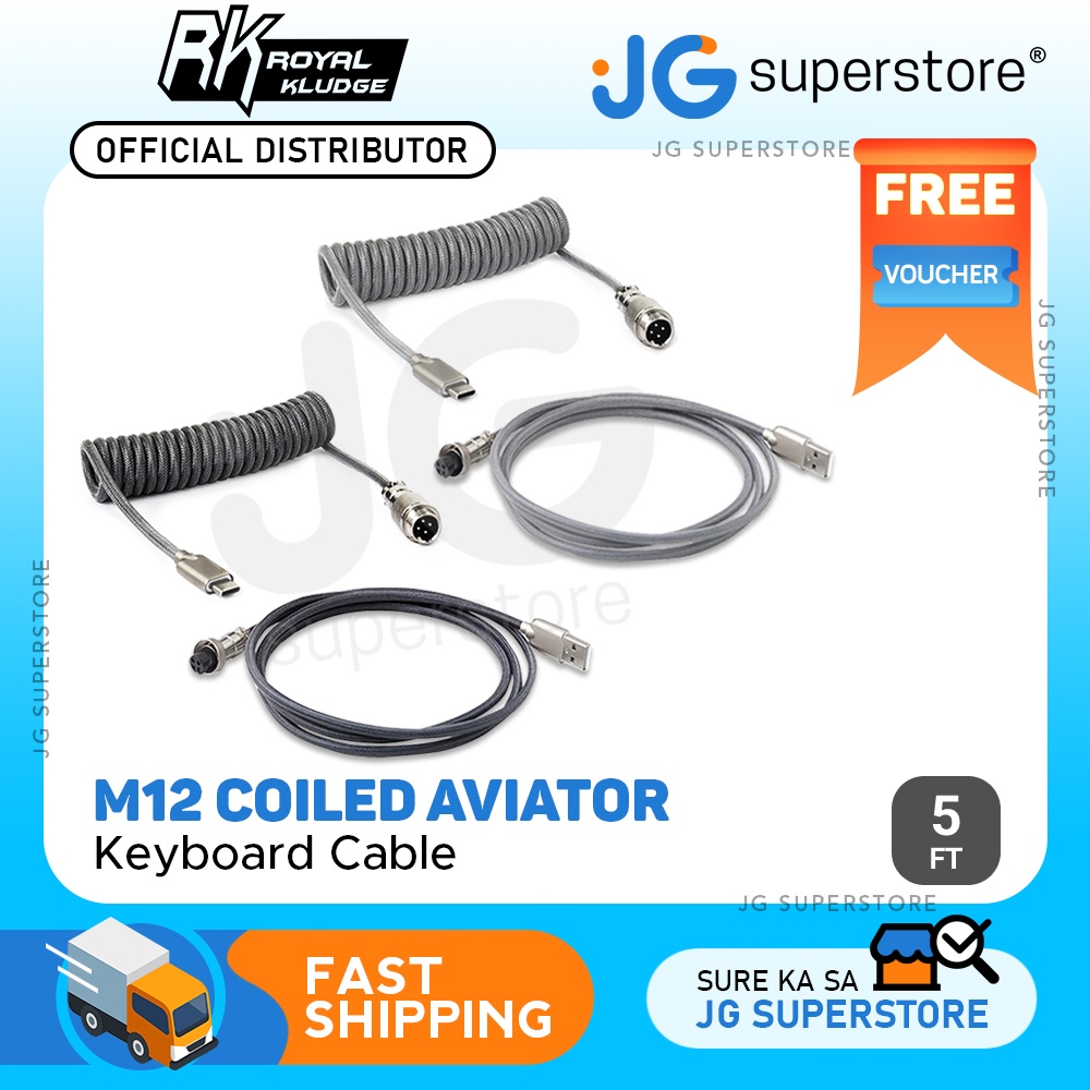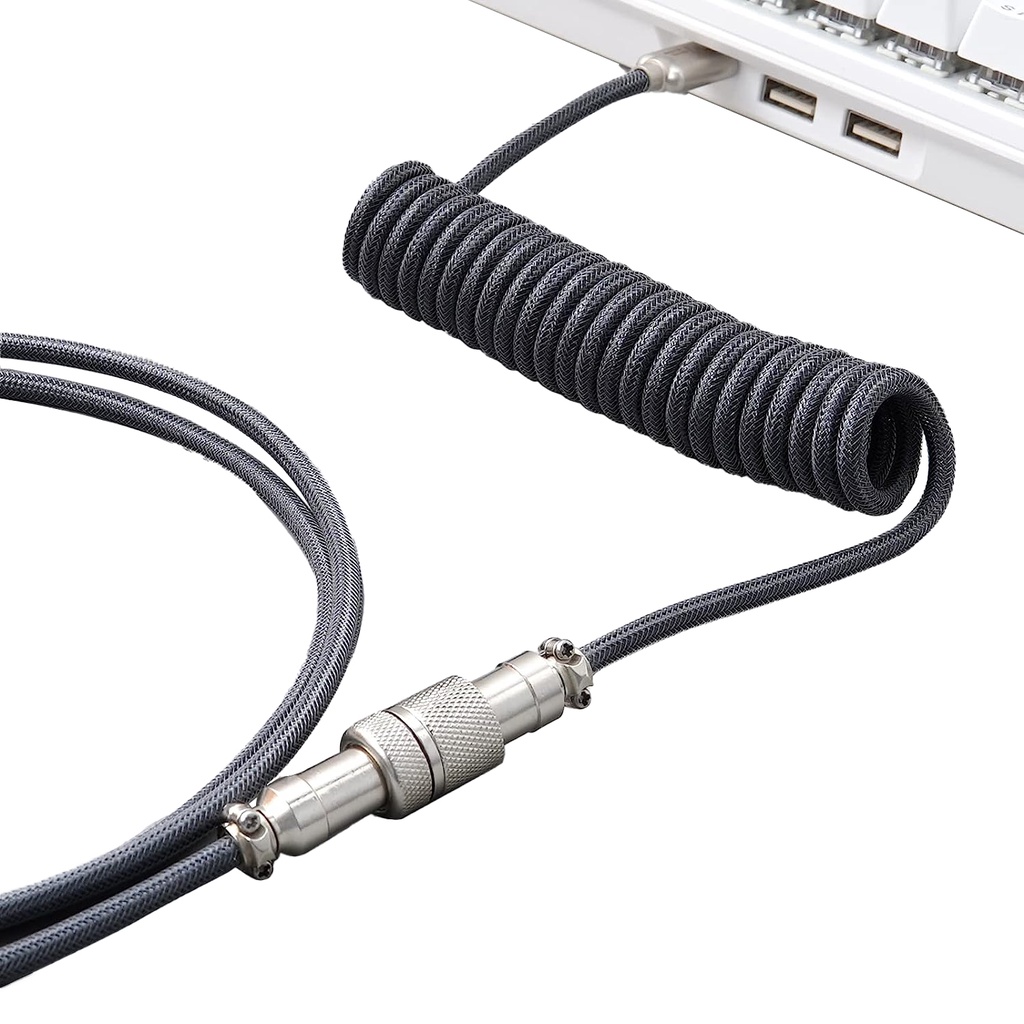 Royal Kludge M12 5ft Braided USB-A to Type-C Aviator Connector Cable for PC & Laptop (Black, Grey)