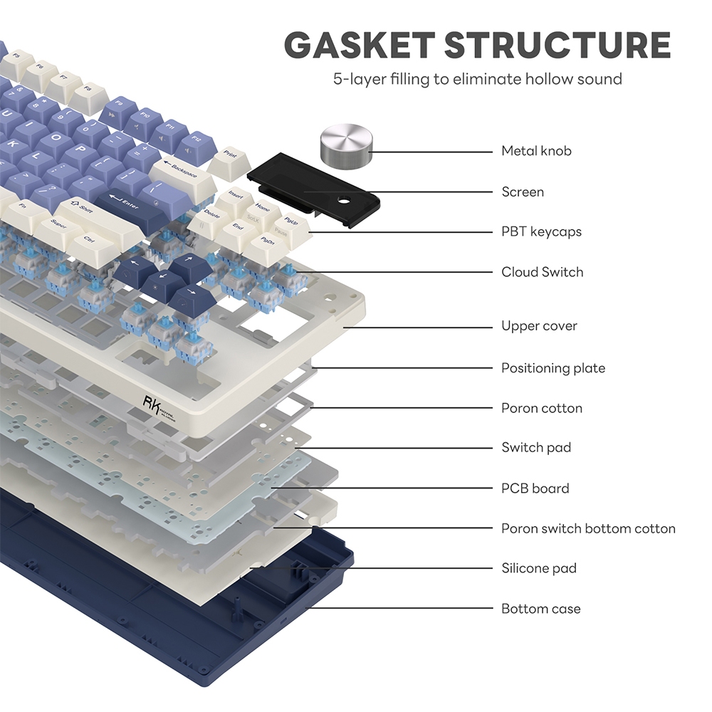Royal Kludge RK S85 Horizon blue 85 Key Knob Buttons Tri-Mode Wireless With TFT Screen Gasket Mechanical Keyboard