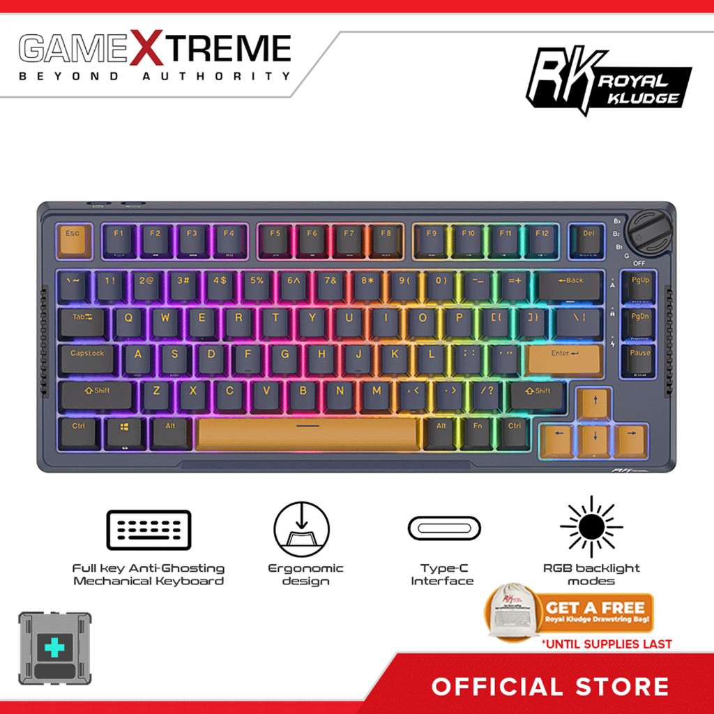 Royal Kludge RKH81 Tri Mode RGB 81 Keys Hot Swappable Mechanical Keyboard Time Machine Sky Cyan Swit