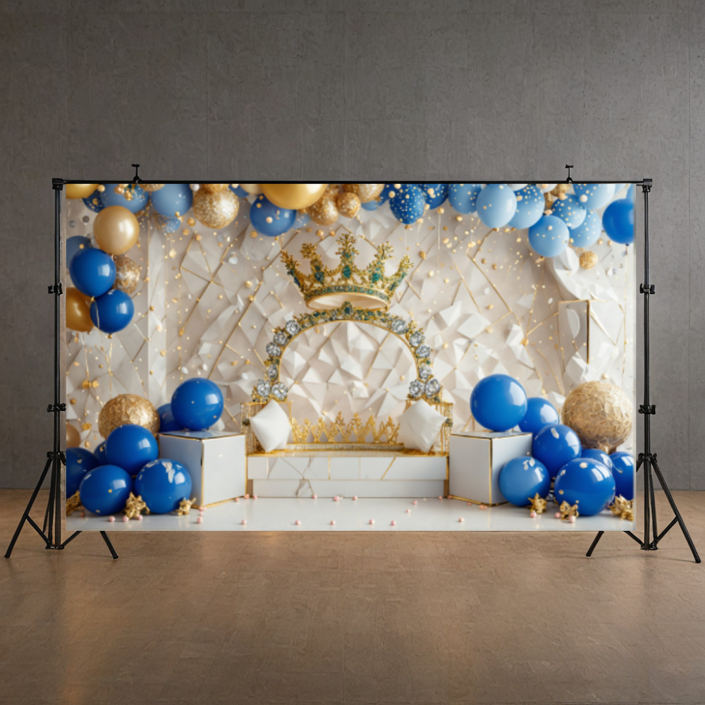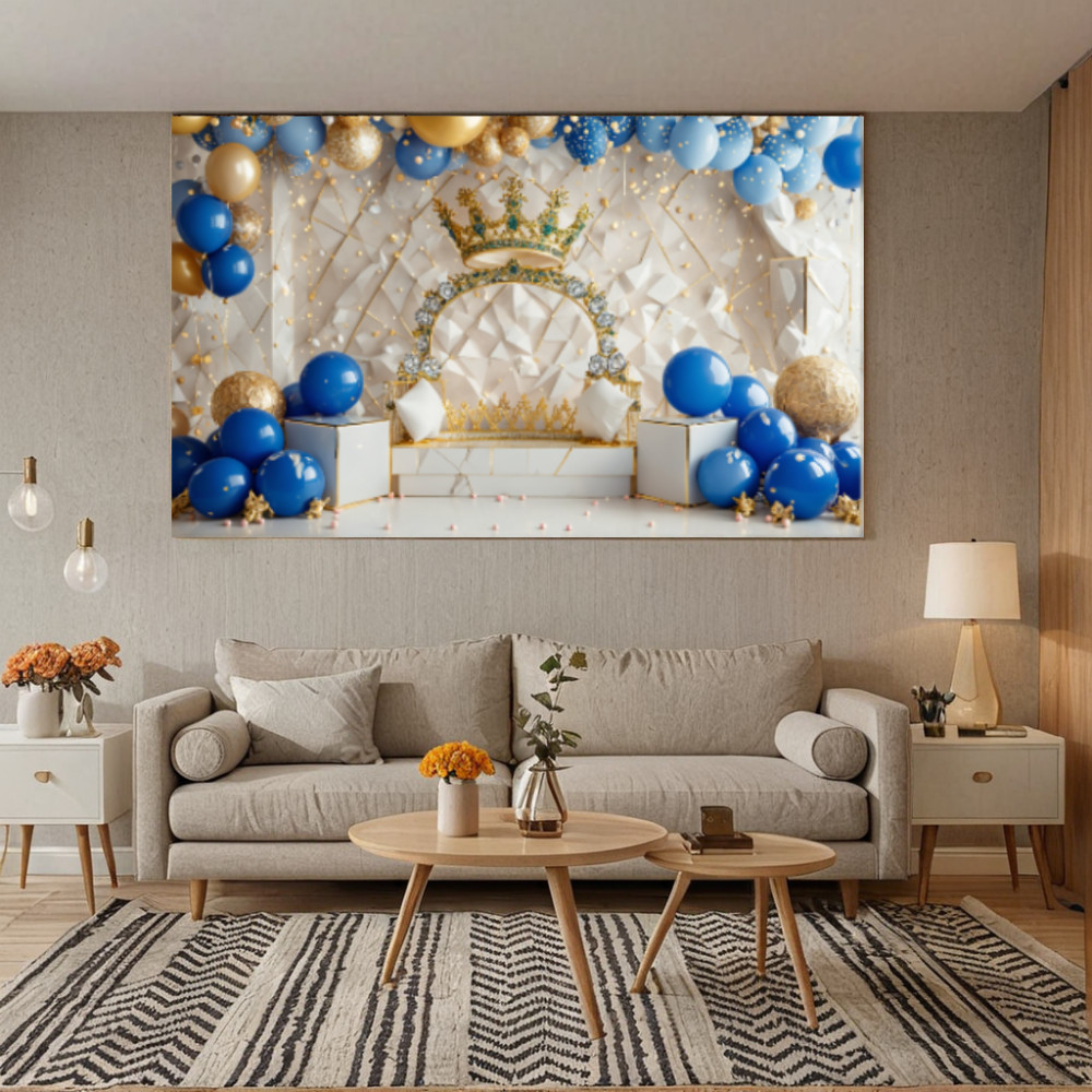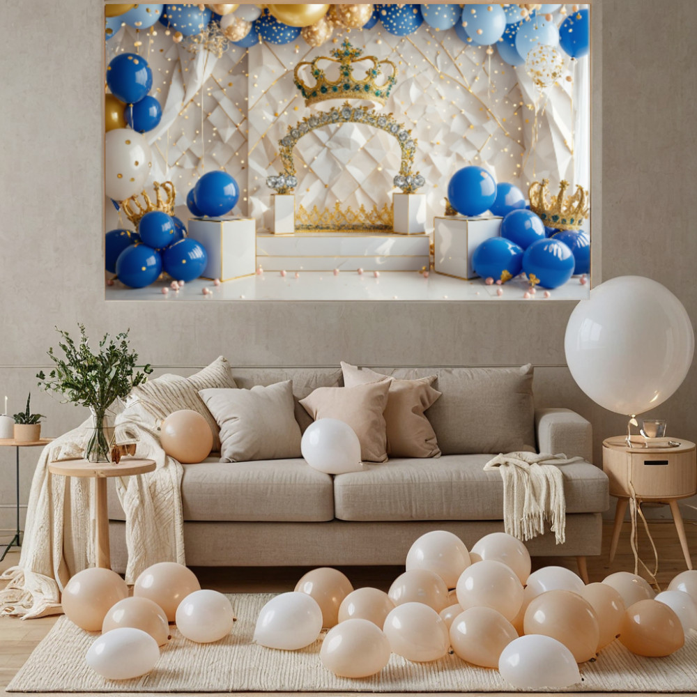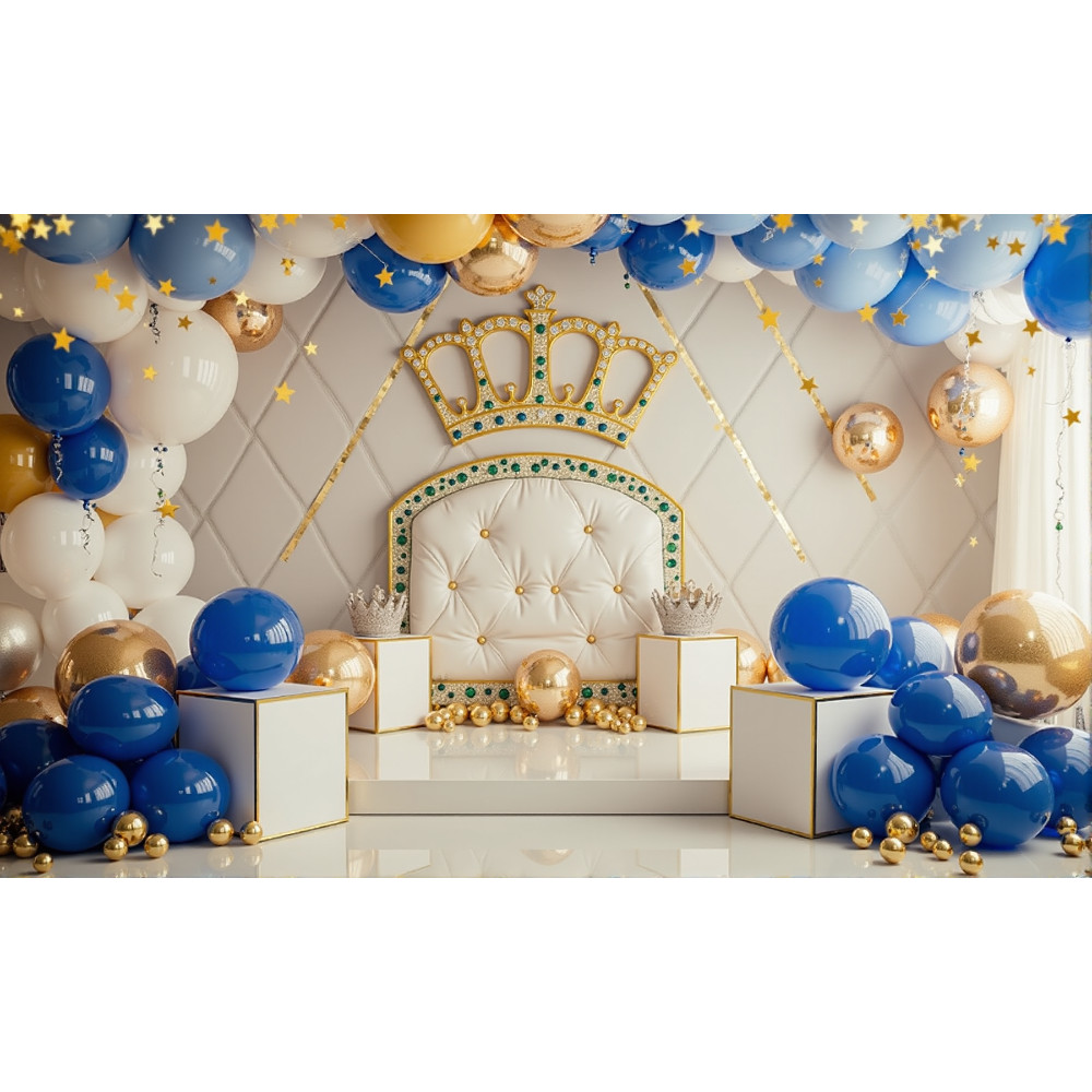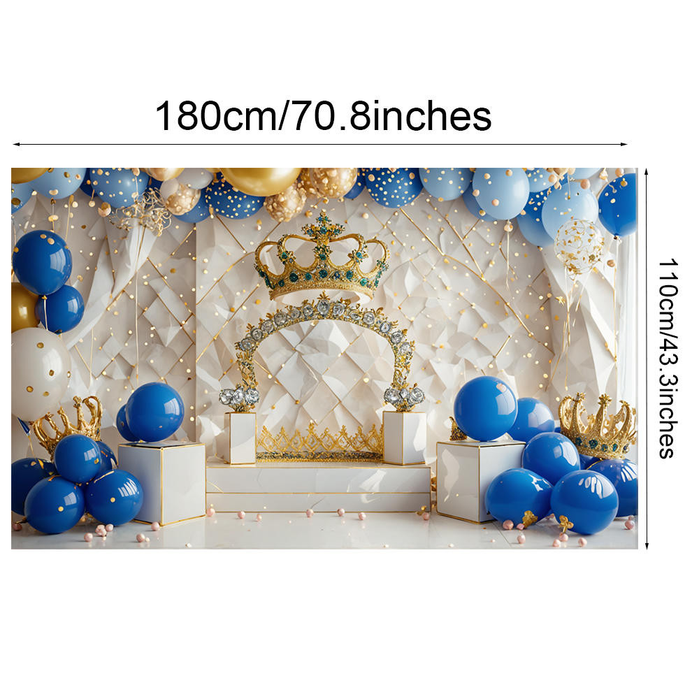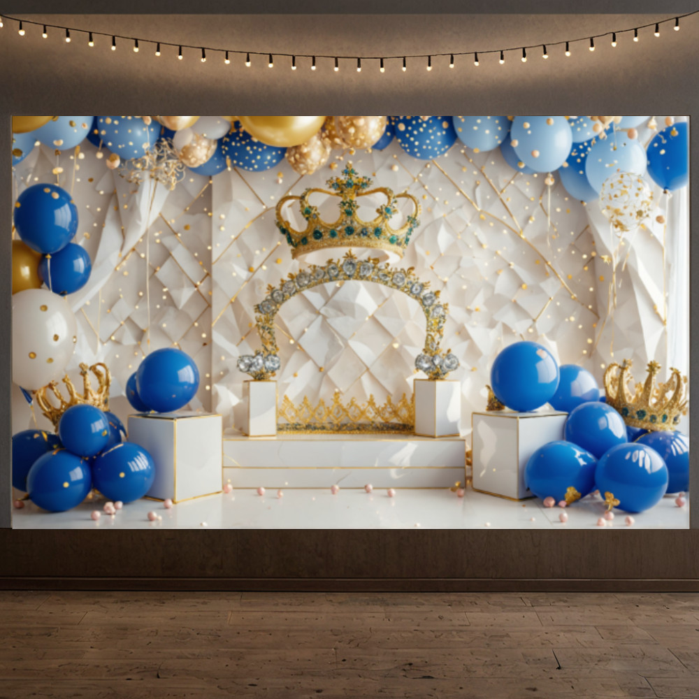 Royal Prince Baby Shower Backdrop for Party Decorations Royal Blue Background Gold Crown Little Prince Baby Shower Photoshoot Photography Background