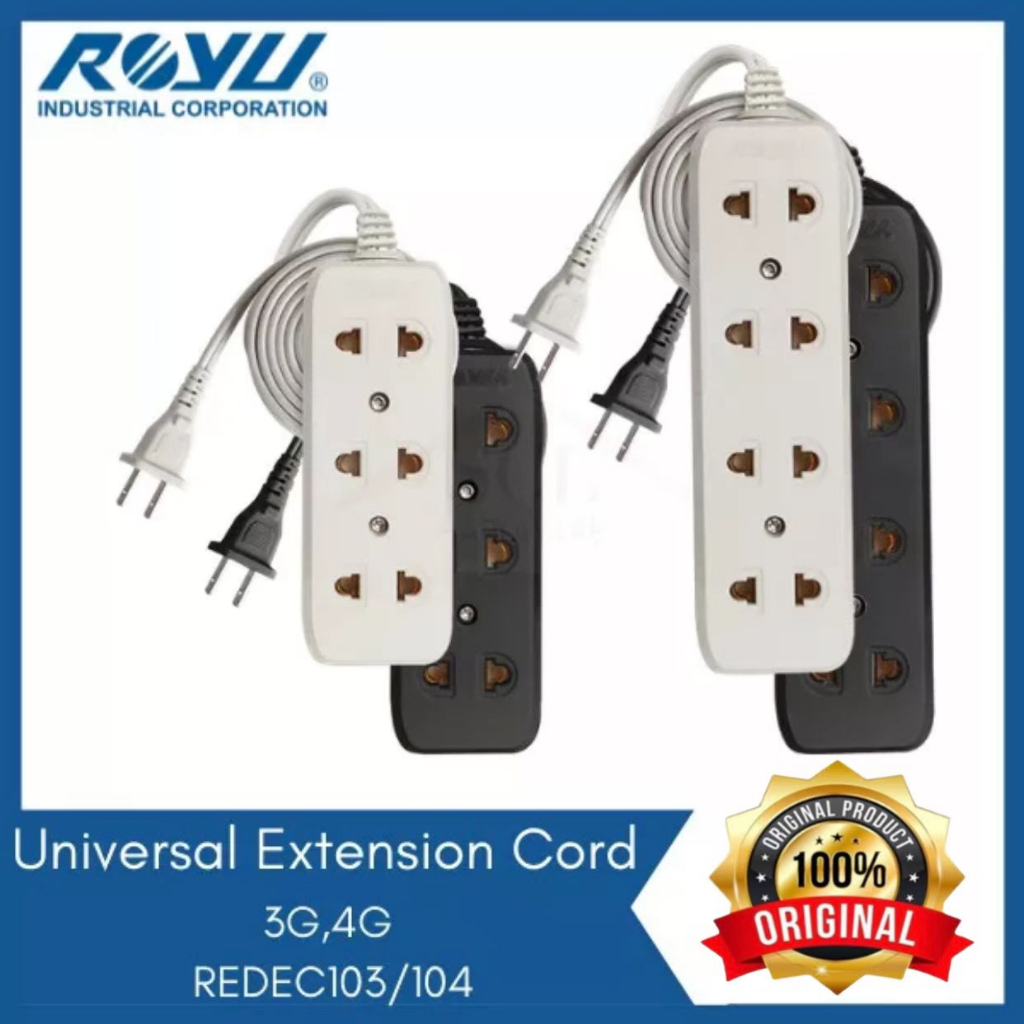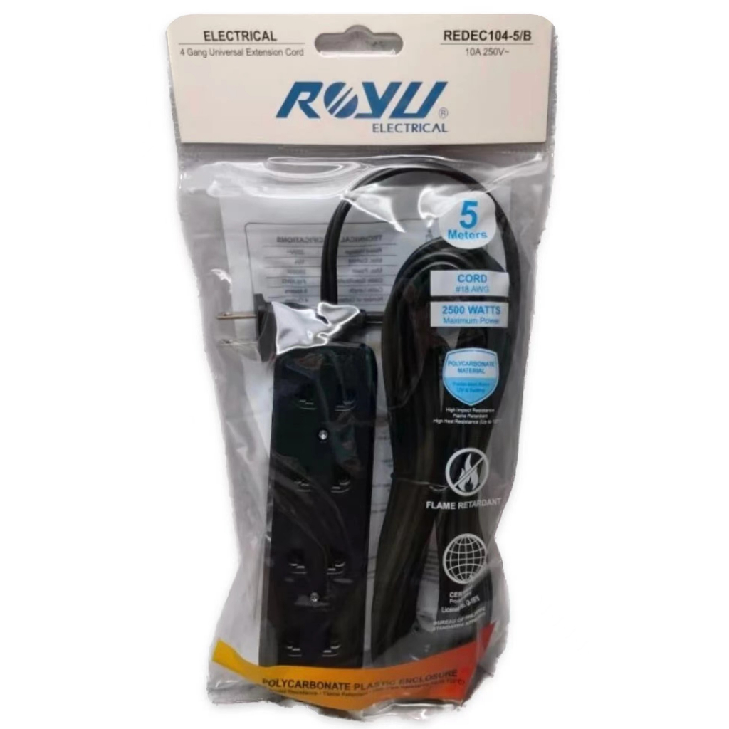 Royu 3 & 4 Gang Universal Extension Cord BLACK (5 METERS)----