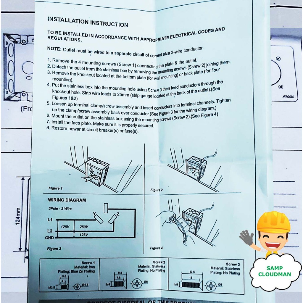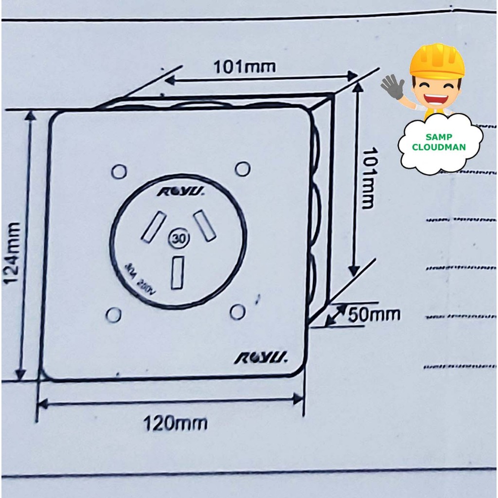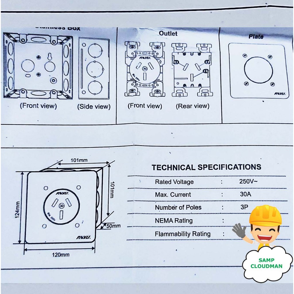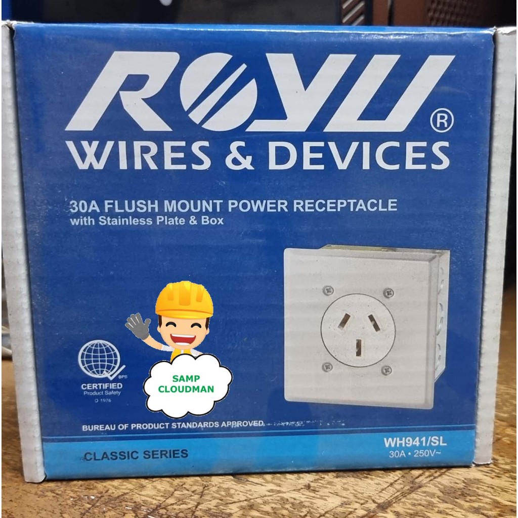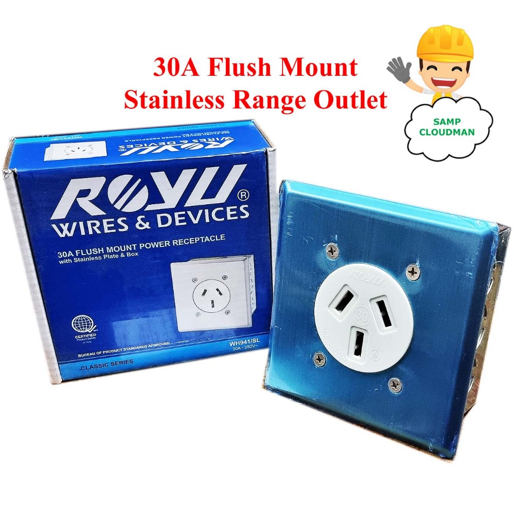 Royu 30A 220V Flush Mount Range Outlet with Stainless Plate and Metal Square Box Receptacle WH941/SL