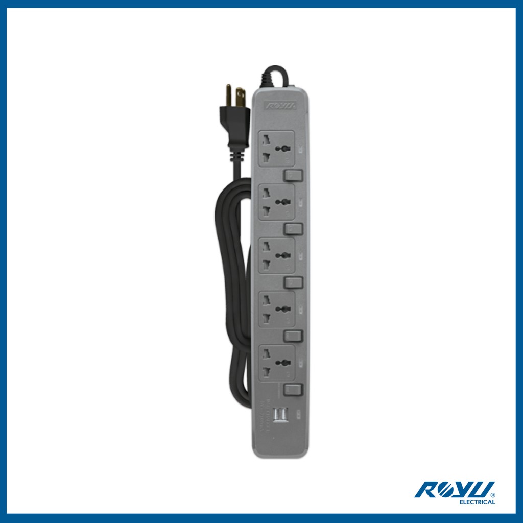 Royu 5 Gang Power Extension Cord with Individual Switches and 2 USB - REDEC725/G