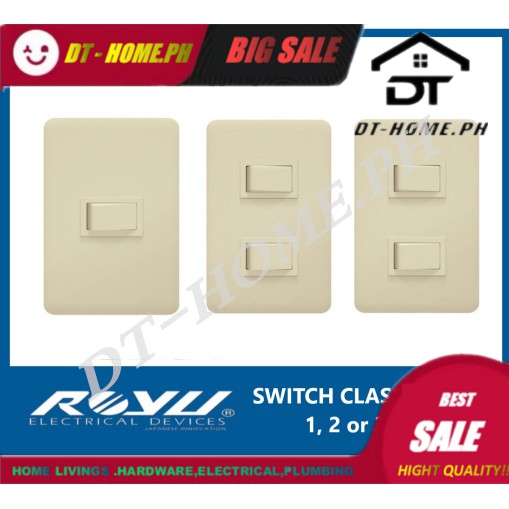 Royu Classic Switch with and without LED 1, 2 and 3 Gang WH501, WH503, WH505,WH601, WH603, WH605