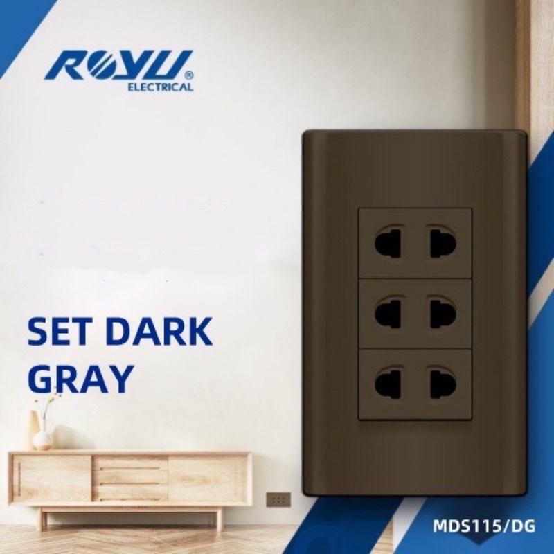 Royu DARK GRAY/DARK WOOD outlet - 1 2 3 Gang /Switch Sets