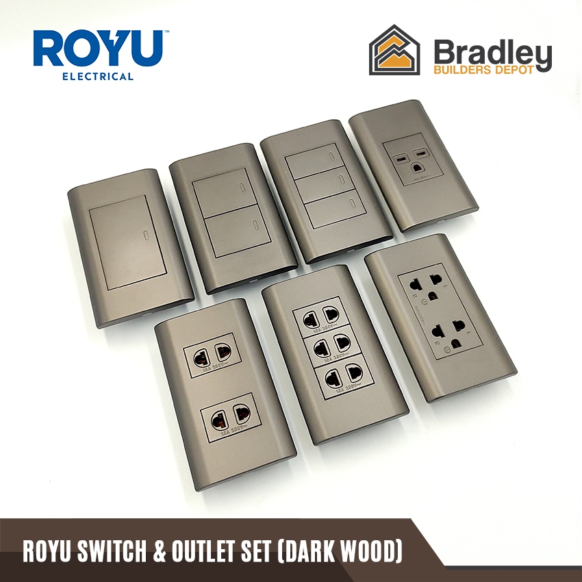 Royu Dark Wood Modern Switch and Outlet Set (Plano Series)
