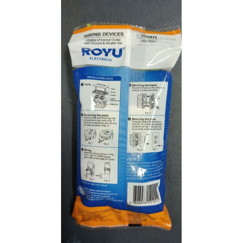 Royu Duplex Universal Outlet with Ground & Shutter Set WD913