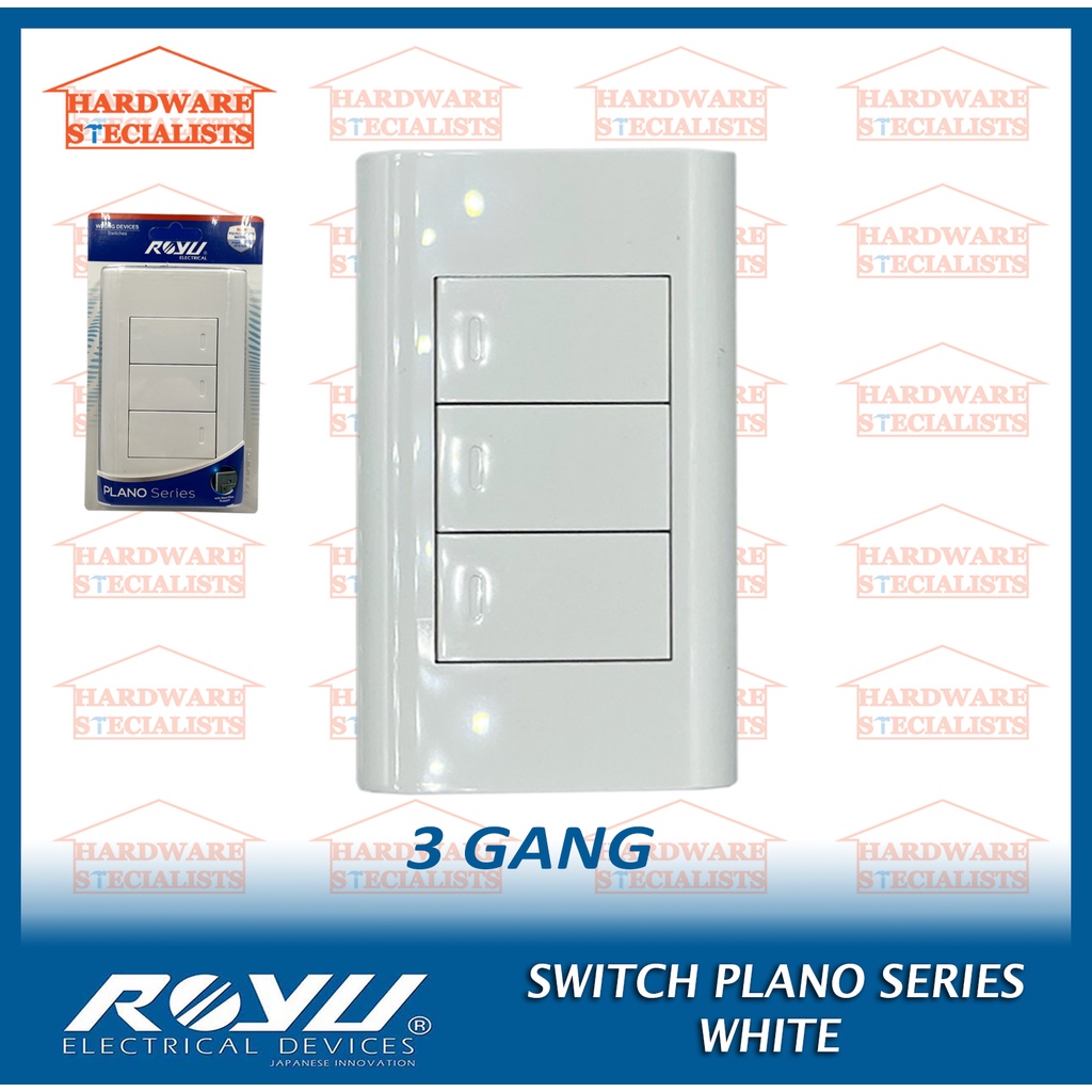 Royu Switch Plano Series White 1 Gang, 2 Gang or 3 Gang MD511 MD513 MD515