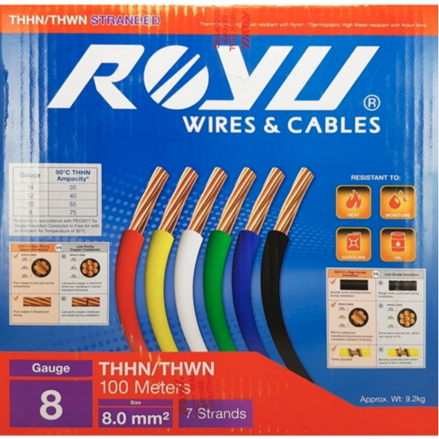 Royu THHN THWN Stranded Electrical Wire Gauge AWG Wire #14 2.0mm #12 3.5mm #10 5.5mm #8 8.0mm per 1m