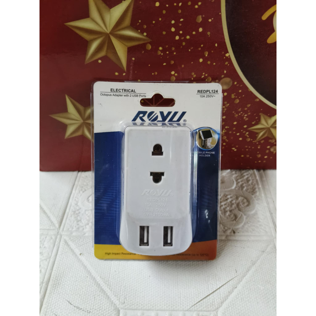 Royu Universal Adapter Outlet With 2 USB Charger Switch Adaptor Plug Power Socket