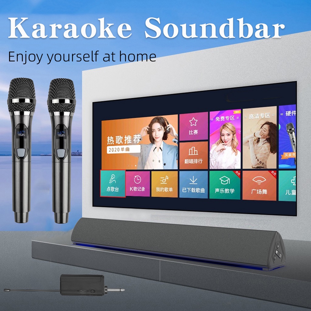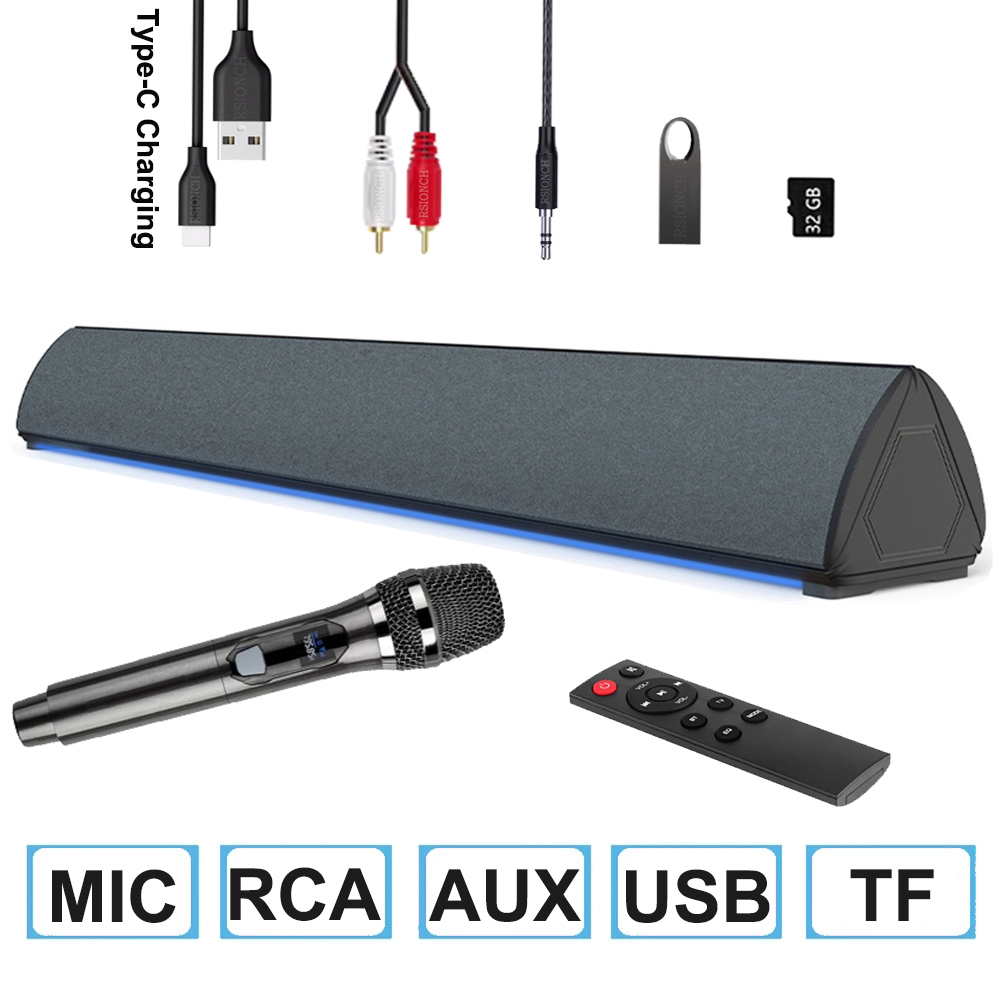 Rsionch Mike Speaker Karaoke Soundbar with Microphone Bluetooth Speaker Bar for TV Dual Wireless Mic
