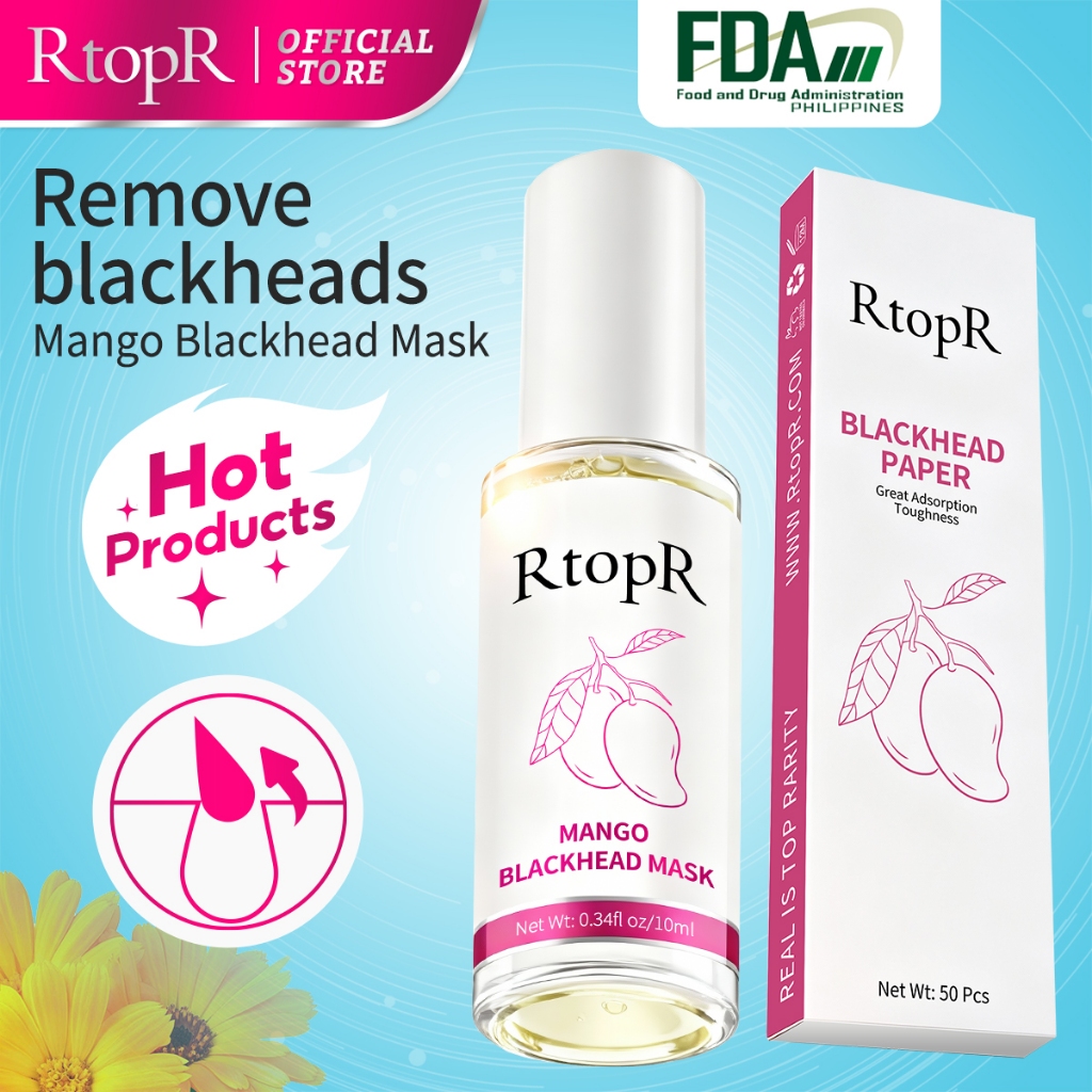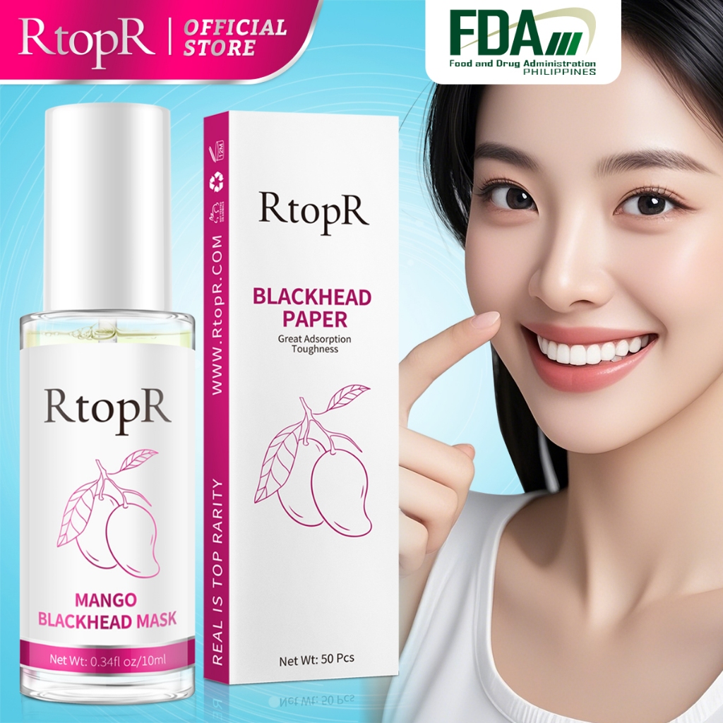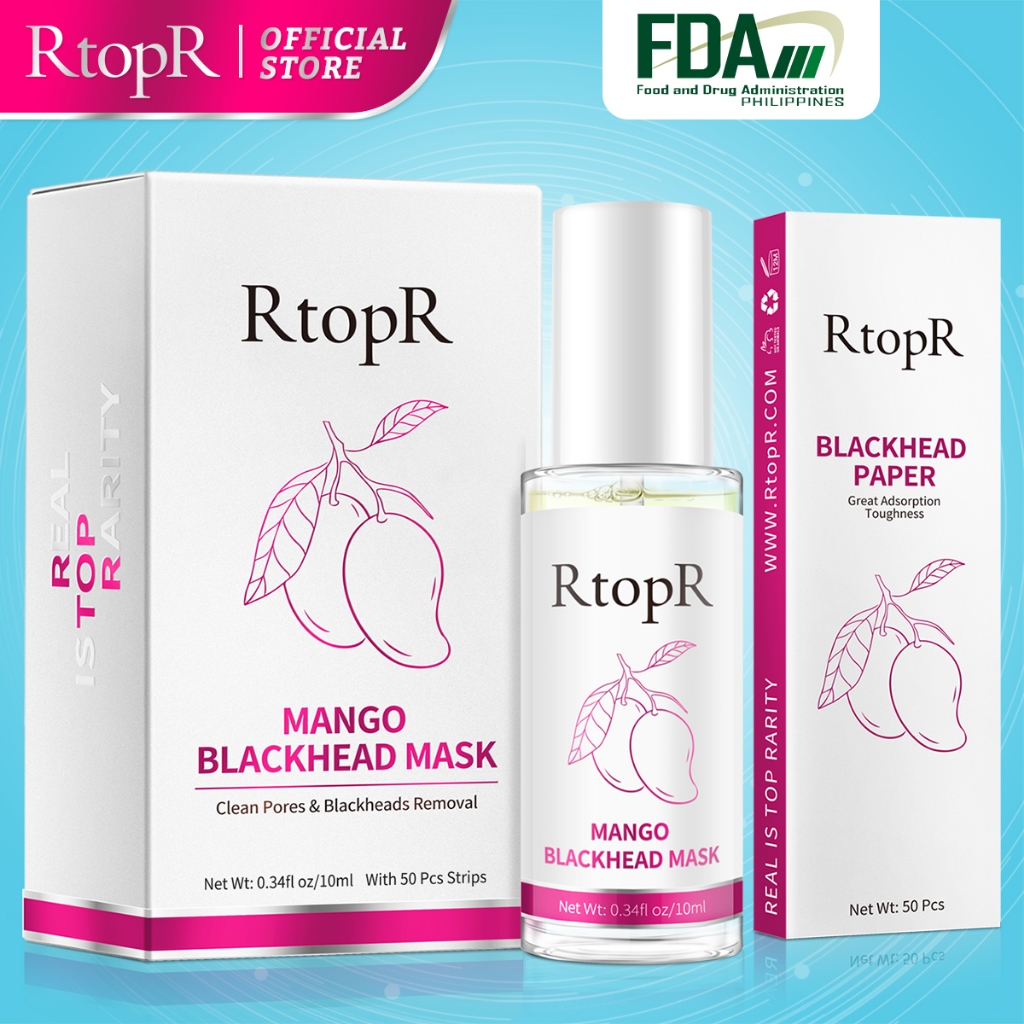 RtopR Mango Blackhead Remover Mask Deep Clean Pores Acne Treatment Peeling Off Nose Mask 10ml+50pcs paper
