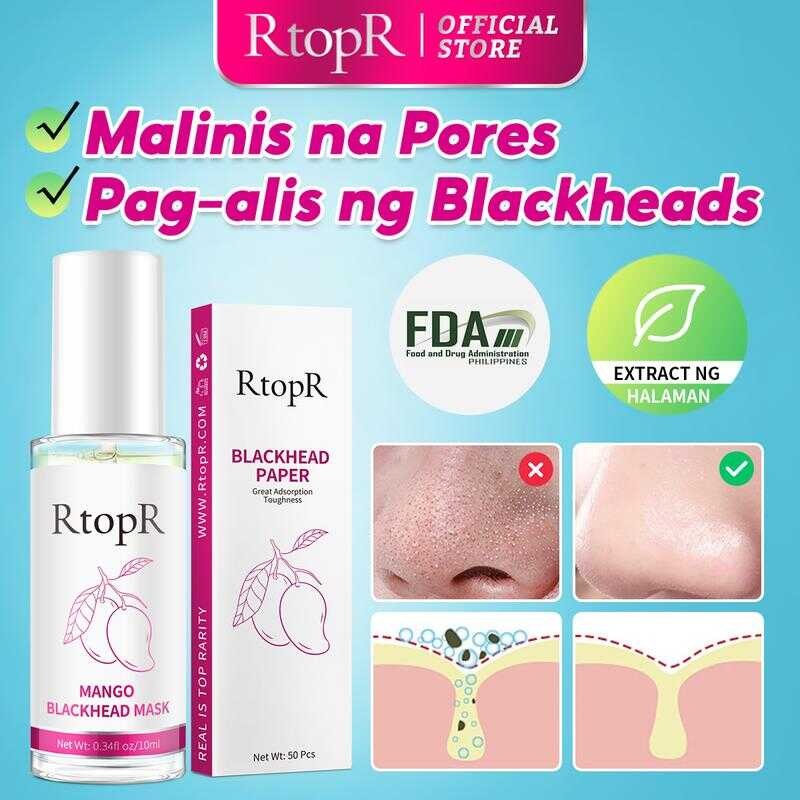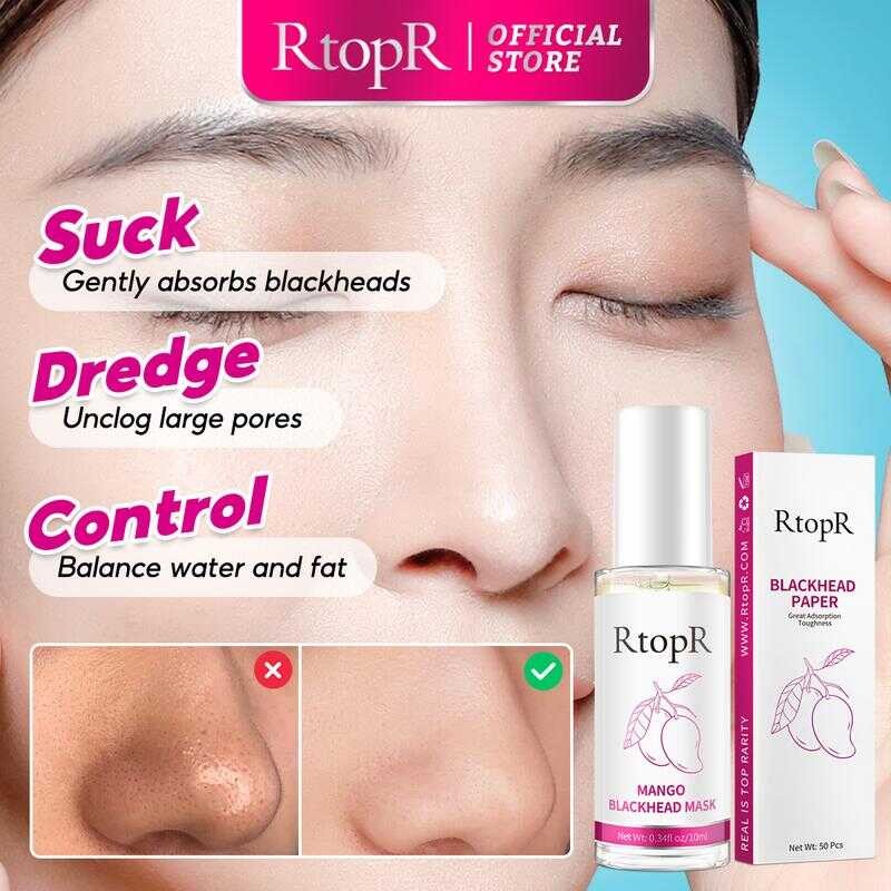 Rtopr【Fda】Mango Blackhead Remover Mask 10Ml+50Pcs Deep Cleans Pores Skincare Peeling Off Nose 6e1