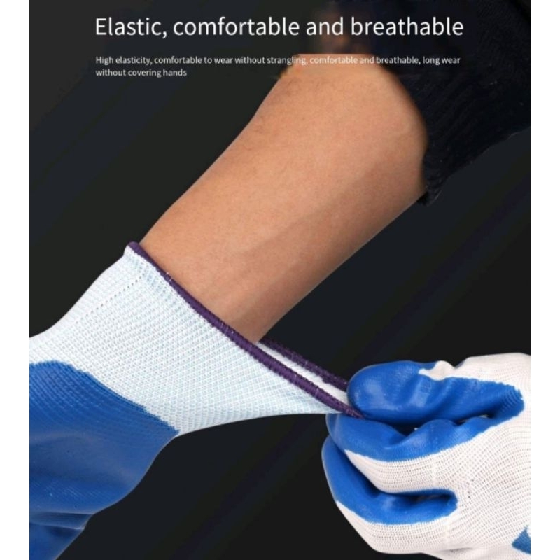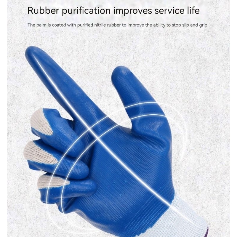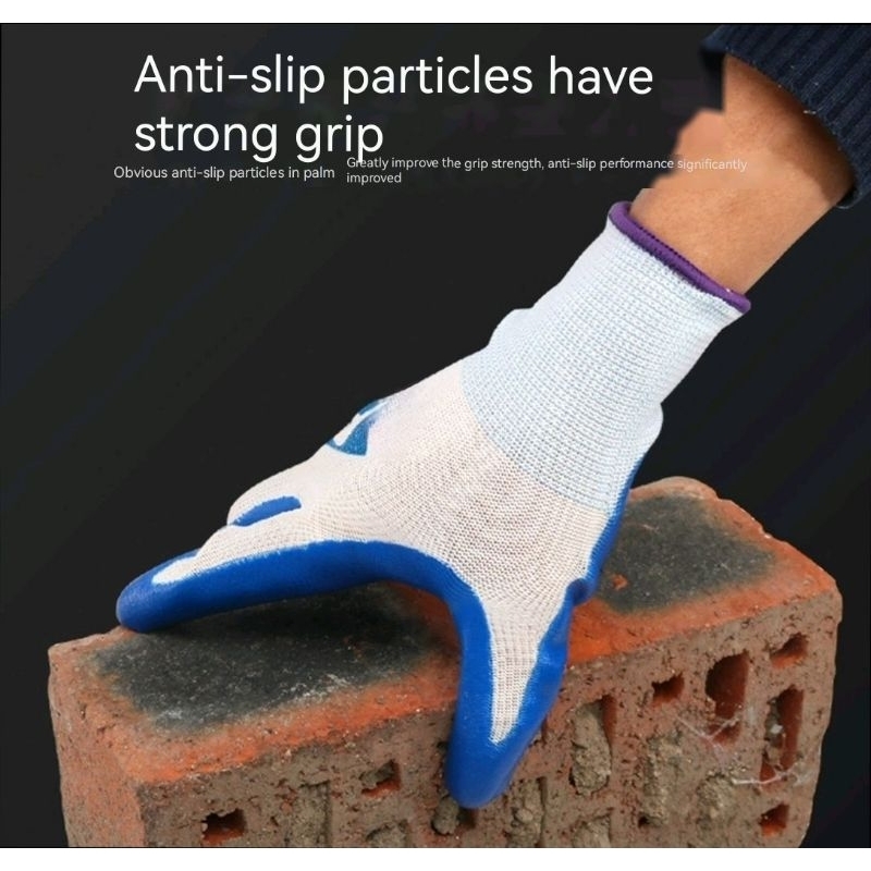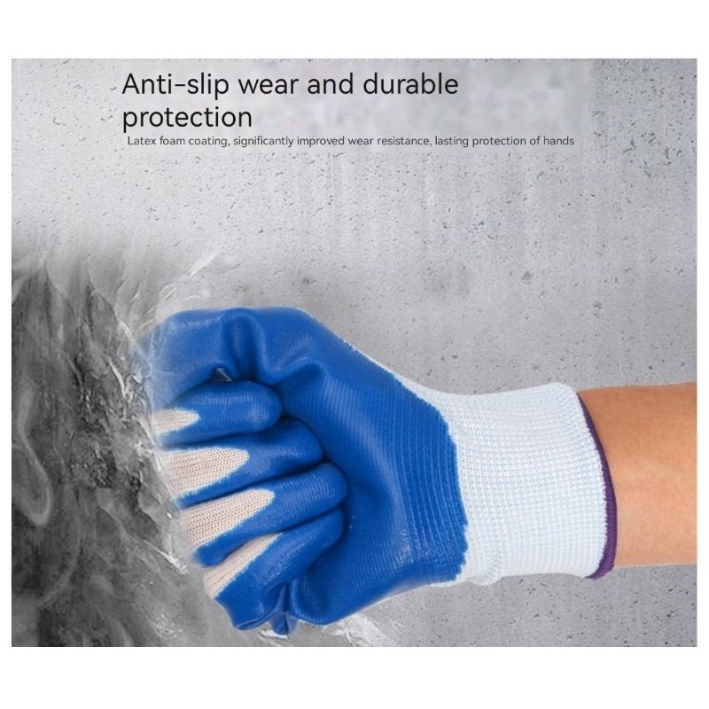 Rubber Coated Gloves Cotton String Knit Crinkle Grip Rubber Gloves Safety Hand Work Gloves#3 (1Pair)