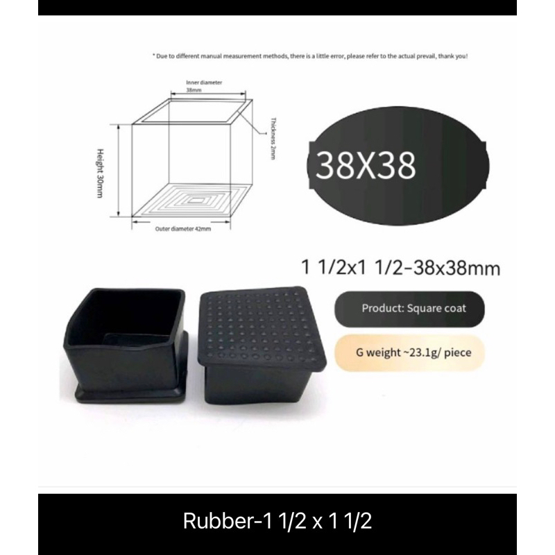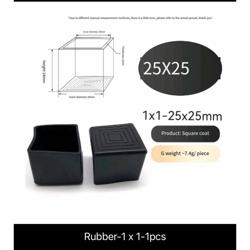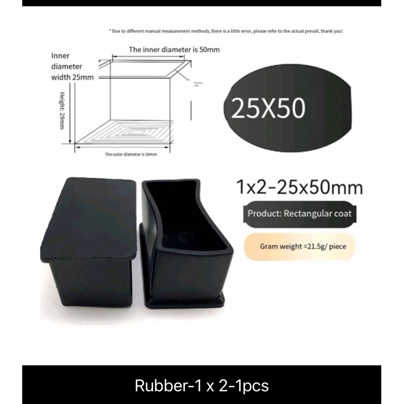 Rubber Footing Square Rectangular TubeRubber Footing ( Price 1pcs)(Take your own measurements first)