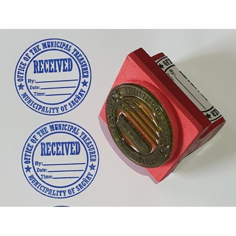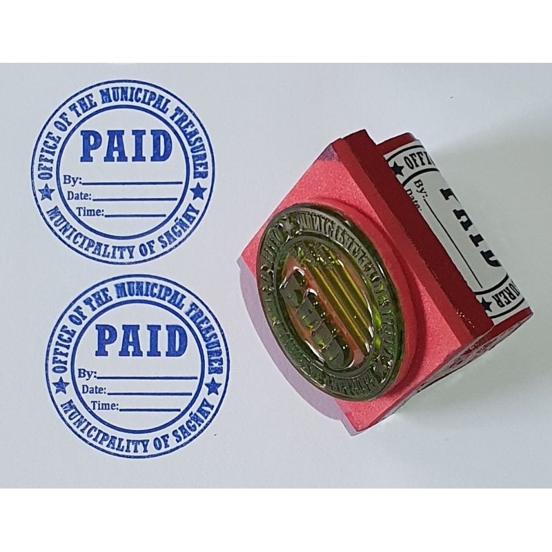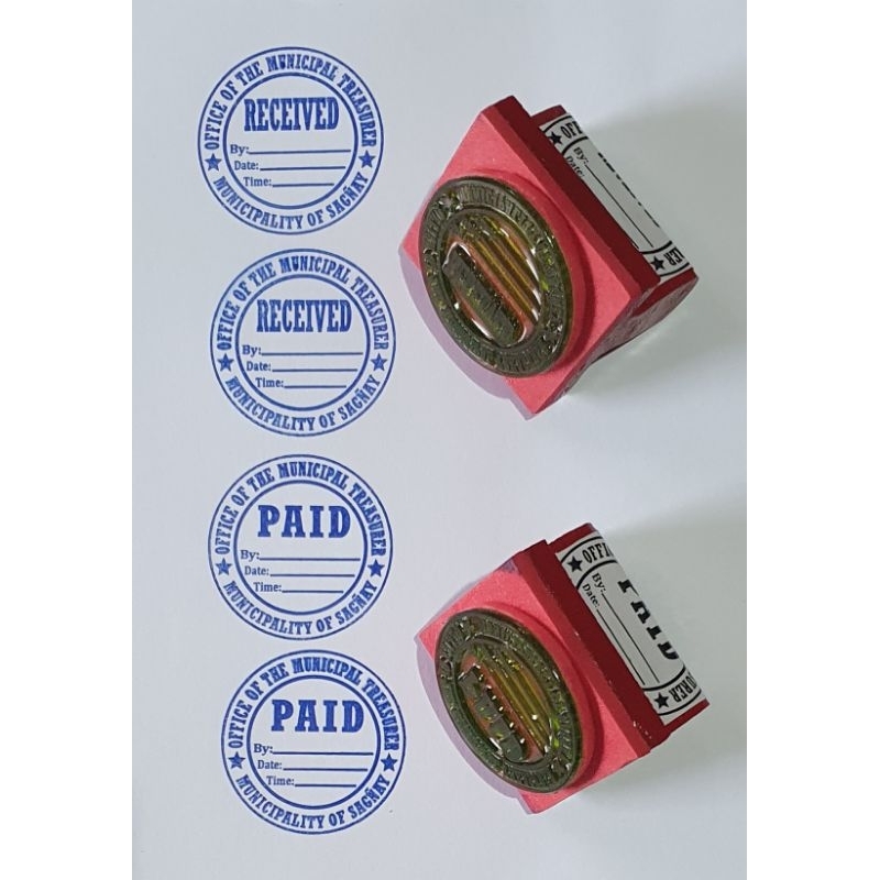 Rubber Stamp Machine Made Wooden Handle. RECEIVED-Round/ PAID-Round Stamp.