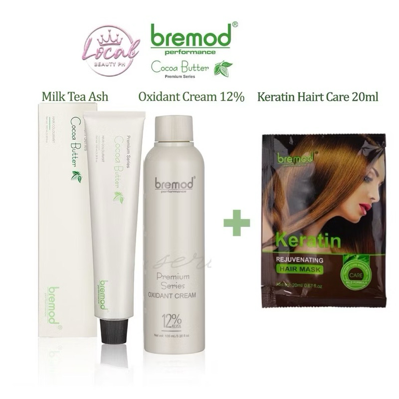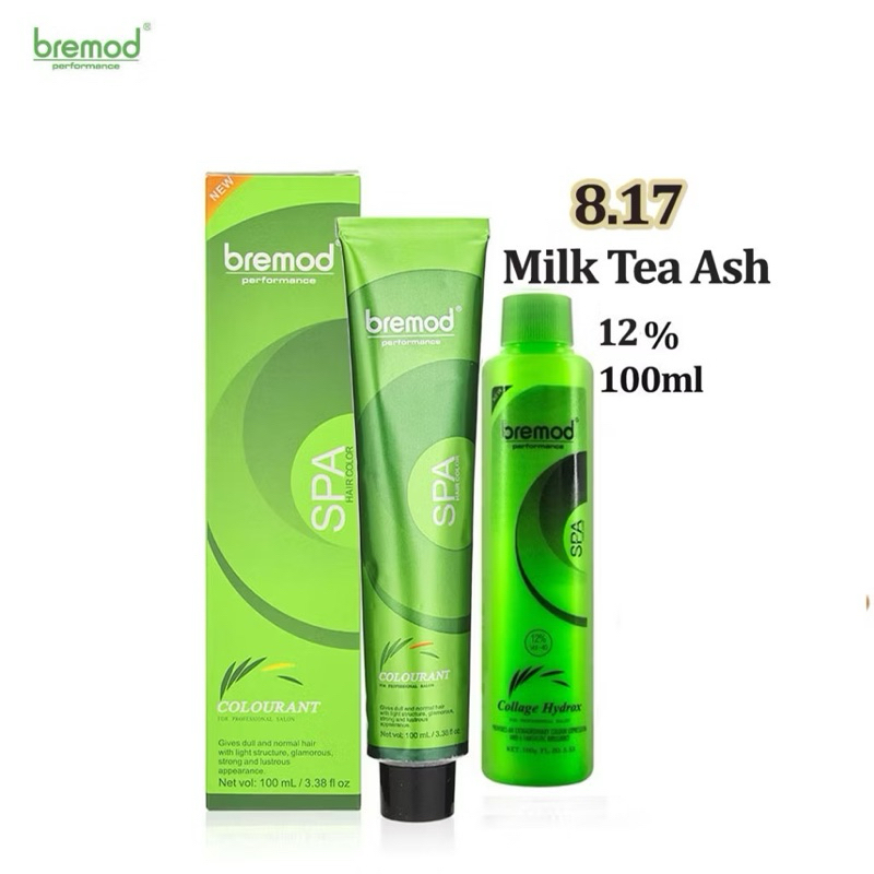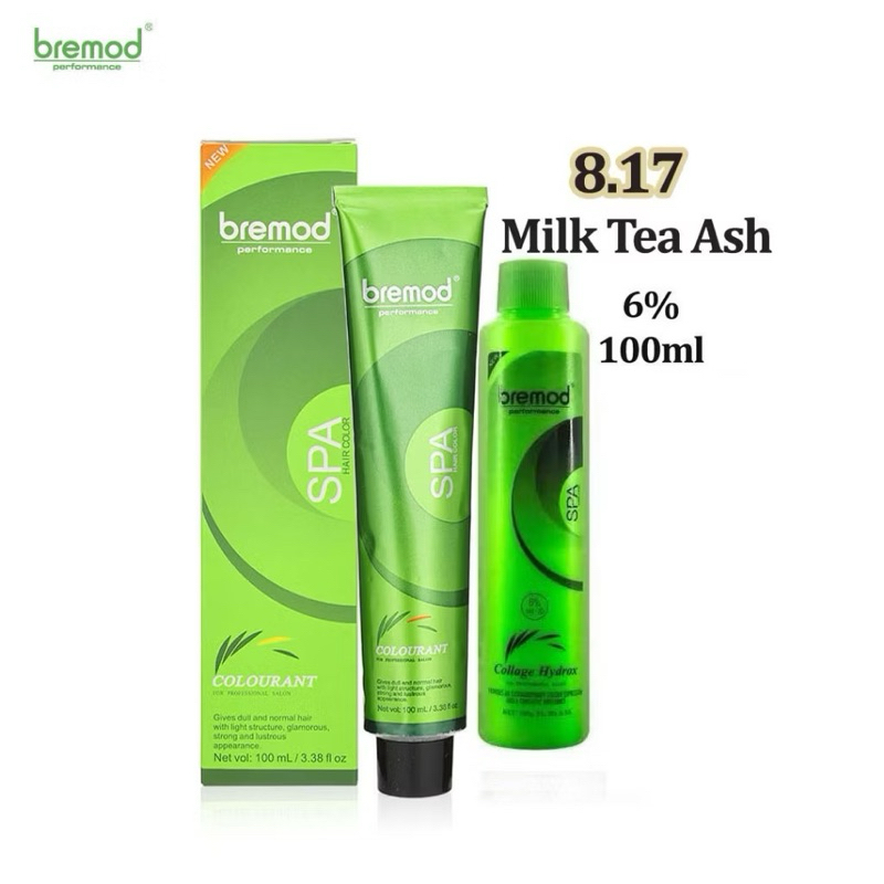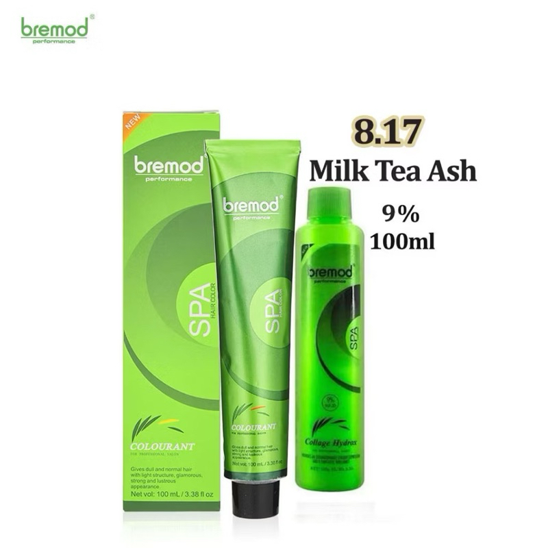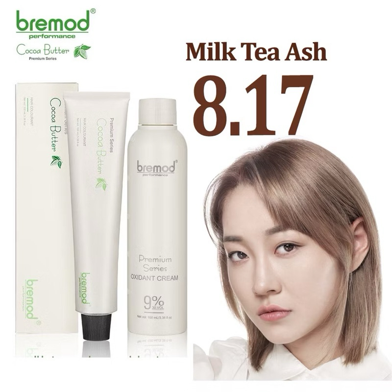 Bremod Premium Hair Color 8.17 Milk Tea Ash Hair Dye Cream +100ml Oxidizer