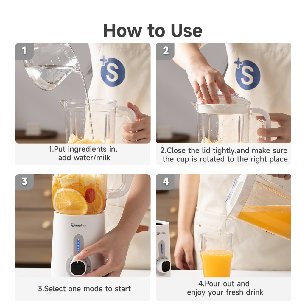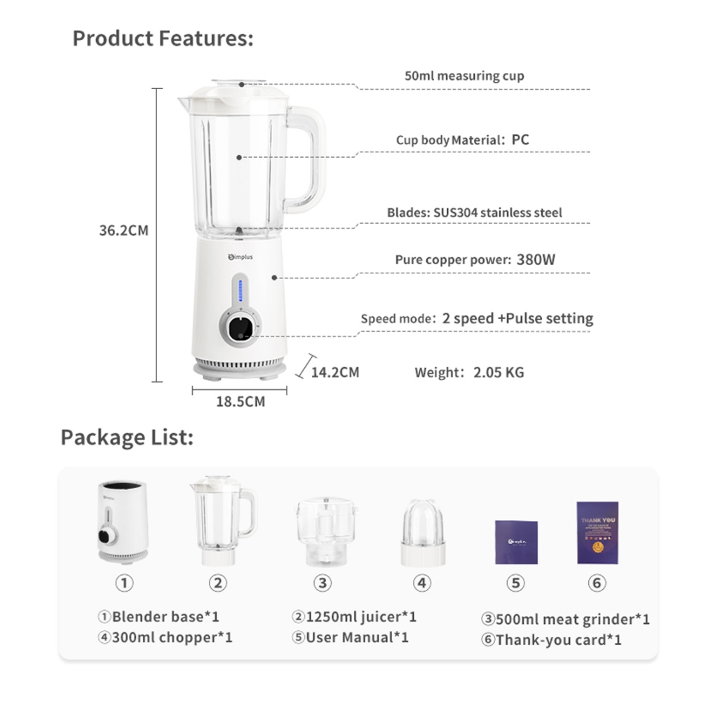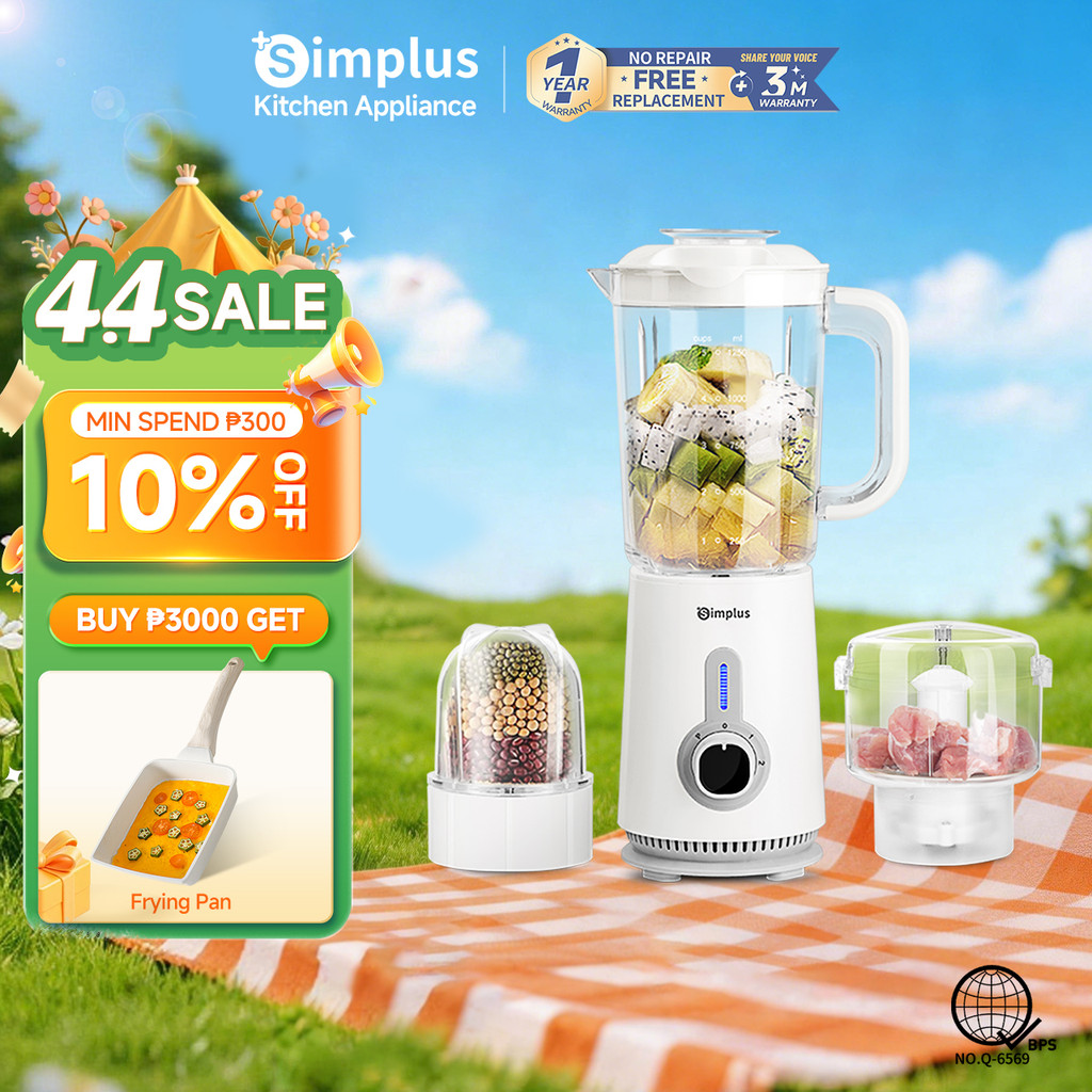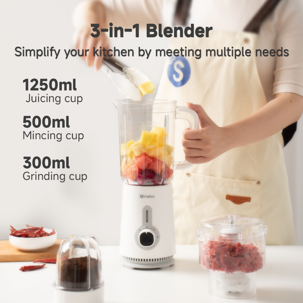 Simplus 3 in 1 Food Processor Blender 1.25L Juicer Meat Grinder Chopper 2 Speed 3 Cups