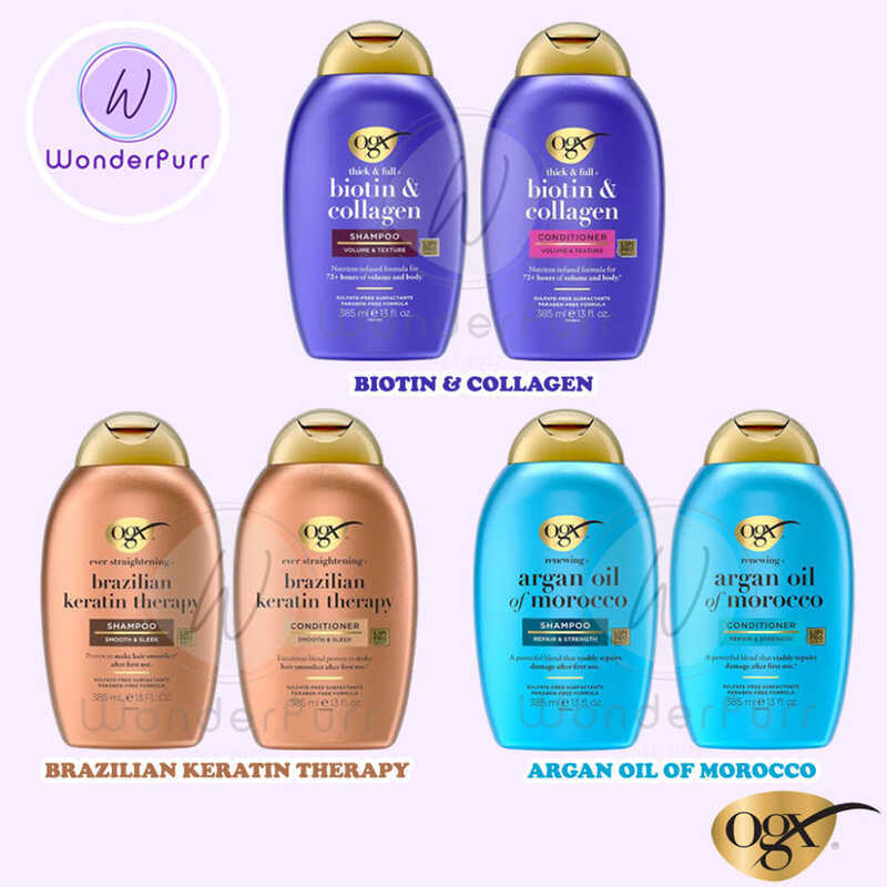 OGX Shampoo & Conditioner 385Ml Sulfate-Free,Paraben-Free(Collagen Biotin/Keratin/Argan) AUTHENTIC C