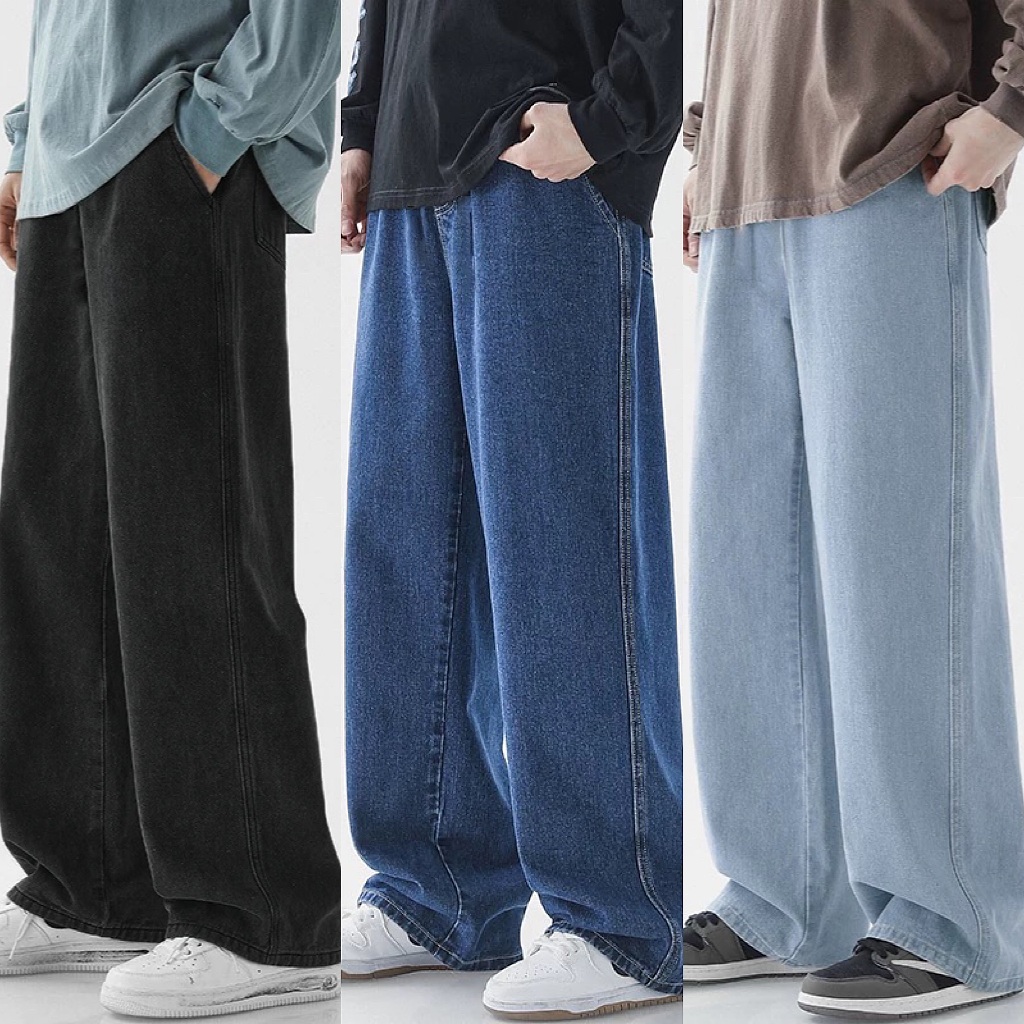 Denim Pants For Men Baggy Straight Cut Light Blue Black Blue Comfortable Casual Jeans