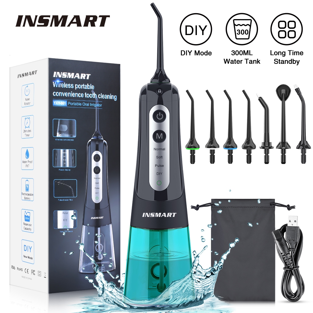 INSMART Water Flosser 4 Modes 7 Nozzles Water Floss Water Flosser Water Jet Flosser 300ML